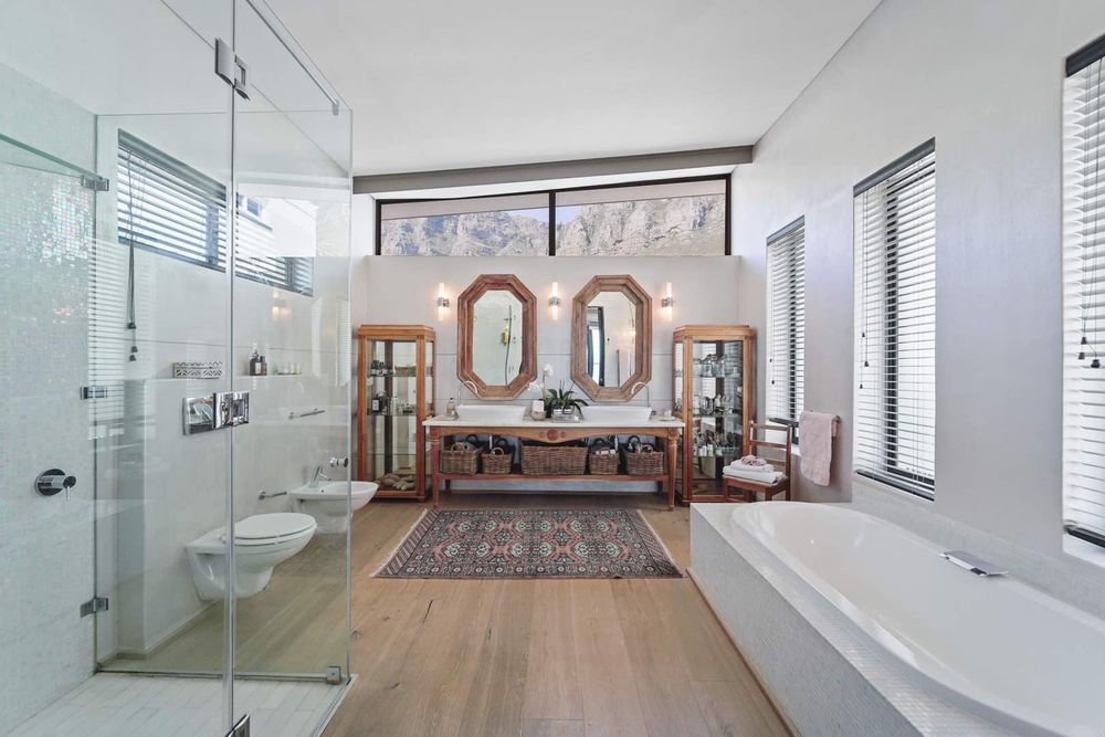 The top floor/entrance level, accommodates the master bedroom and three en-suite guest bedrooms. The master suite is a true sanctuary, featuring floor-to-ceiling glass doors that lead on to a wrap around balcony with breathtaking views of the Atlantic Ocean and the majestic Twelve Apostles as the backdrop. This suite includes, a generous size dressing room and an opulent en-suite bathroom.