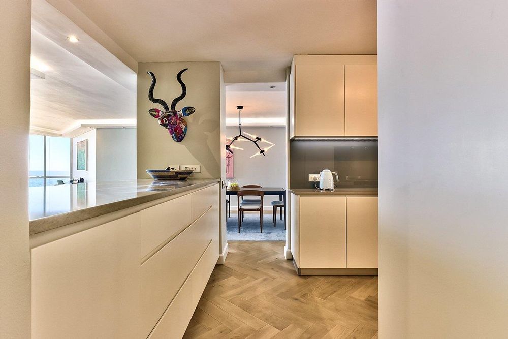 Flawless apartment high up in sought after The President in Bantry Bay with spectacular views of the Atlantic Ocean. Renovated from top to toe. 2 bedrooms both with en-suite bathrooms. Guest cloakroom. Open-plan kitchen, lounge & dining area leading to large terrace with electric awning. Electric blinds. Oggie Hardwood Flooring, German bathroom fittings. Integrated Smeg appliances. Underfloor heating throughout.