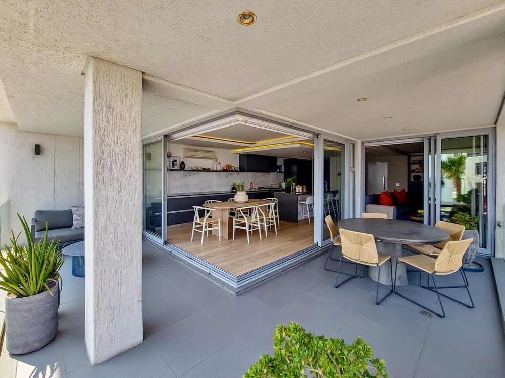 Open Living room and dining room with a wraparound terrace