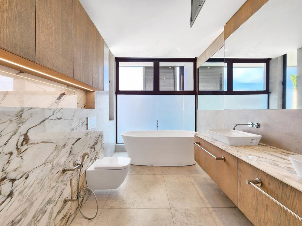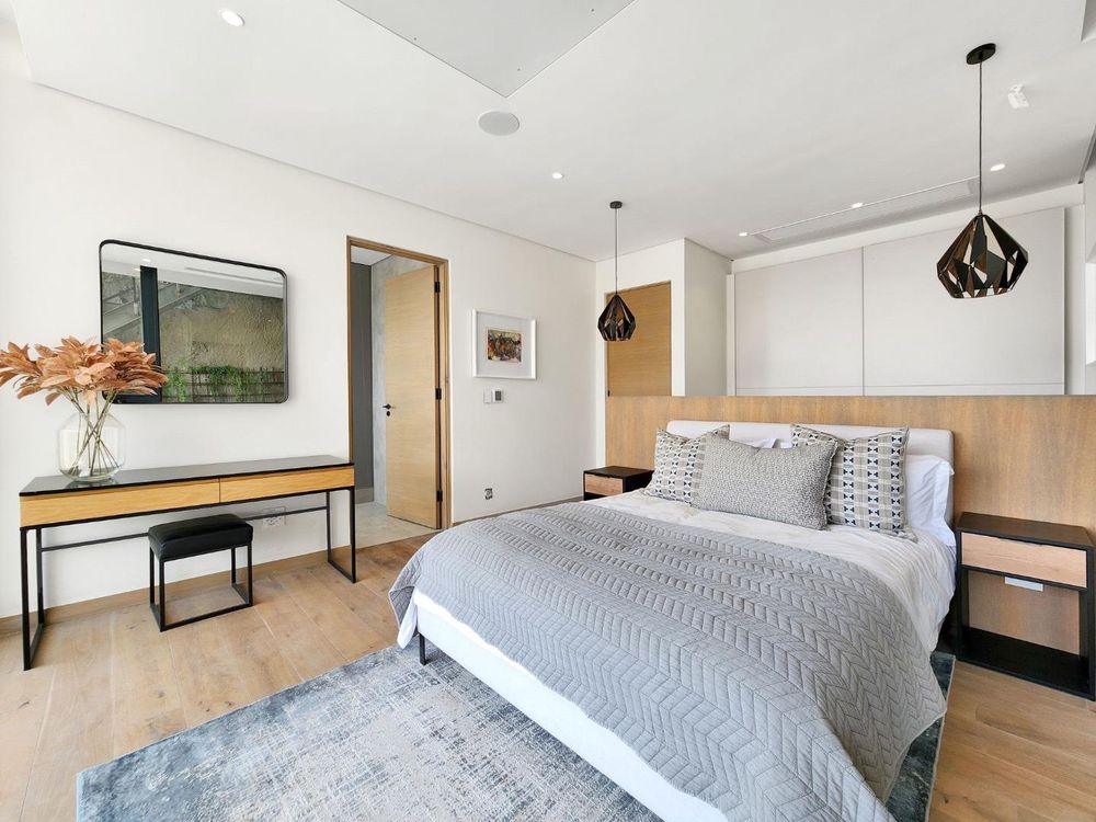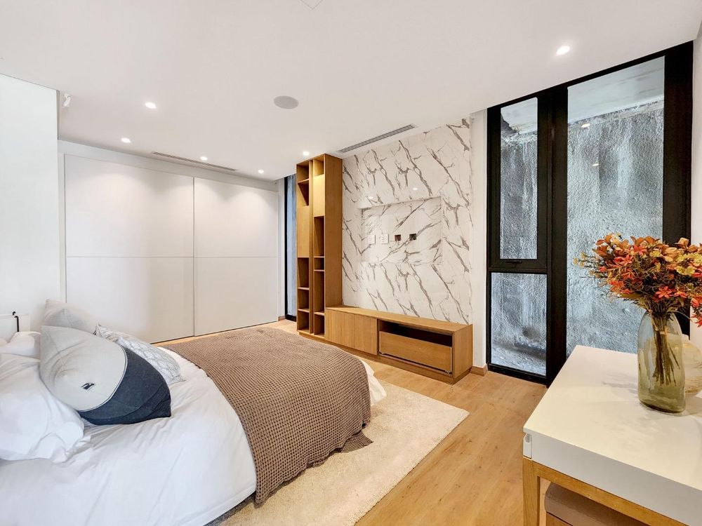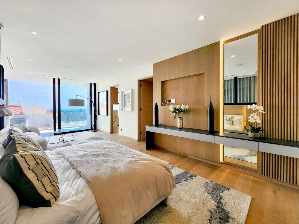 The second floor is dedicated to a sensational and luxurious master suite, complete with a sea-facing en suite bathroom, a high-end walk-in dresser, & a lounge area that extends onto a private terrace.