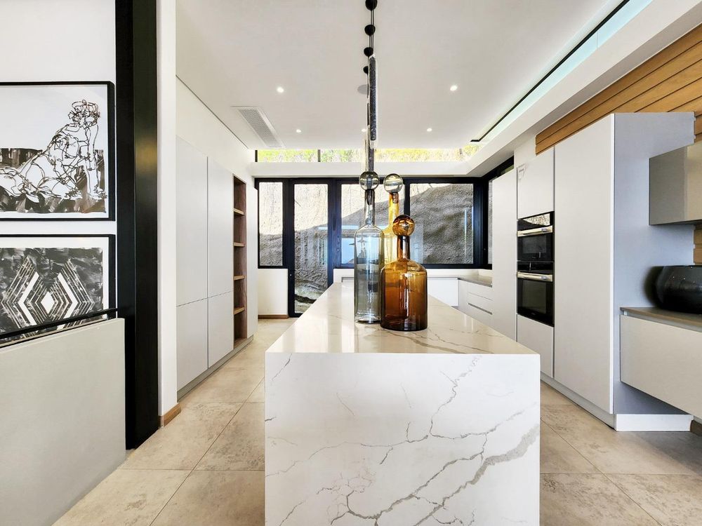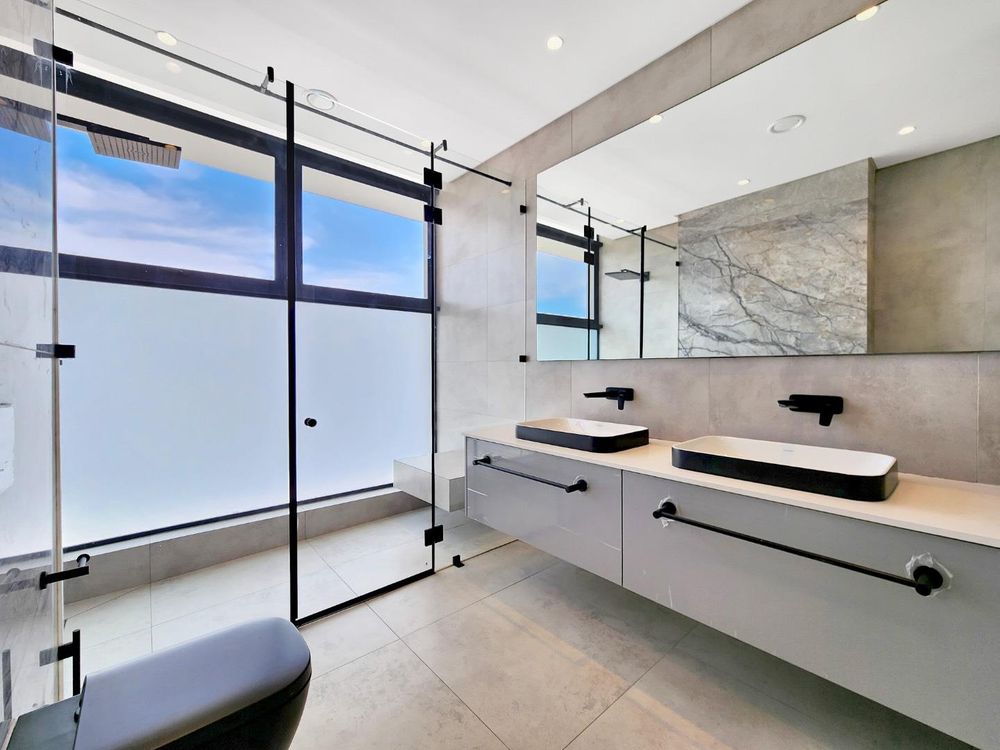Fully automated security, air-conditioning, underfloor heating, site-sourced Cape granite trimmings, backup generator and a 12kw back up solar system.