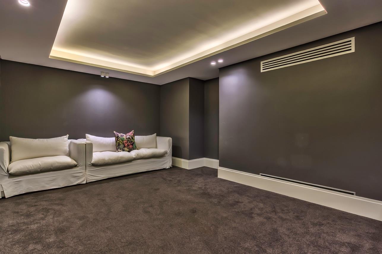 The state-of-the-art kitchen is a masterpiece of design — featuring integrated Gaggenau appliances, a beautiful granite island ensuring a seamless connectivity to the dining and lounge areas. The architectural lighting accentuates the home’s modern elegance.
