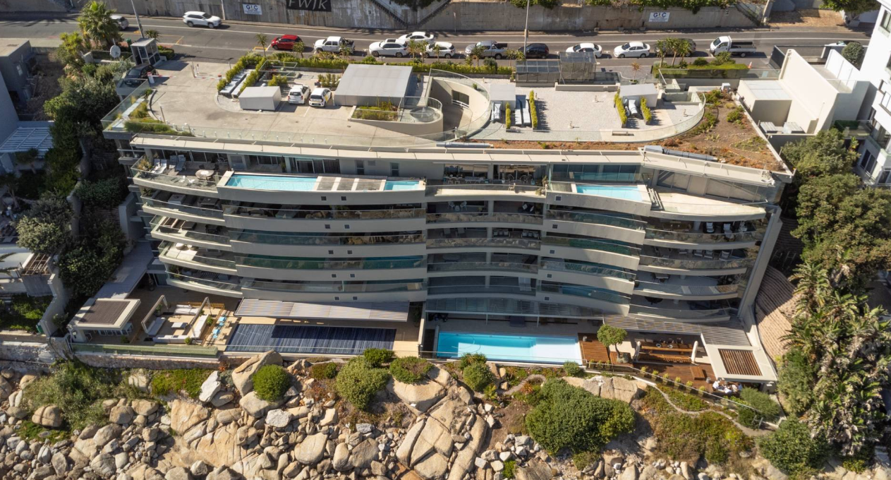 24-hour-person security and guest parking on the roof of the building beautifully and ergonomically-designed, in order to best maximise the ocean and coastline views from the road itself. Considered, finally, one of the most sensitively-designed buildings with priority placed on the environment with the least resultant impact on the coastline views for the public passing by the area on a casual promenade walk, drive or bike ride.