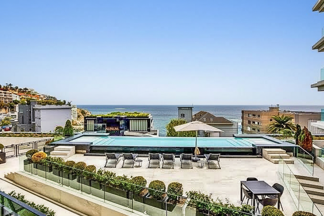 Aurum, meaning shining dawn, lives up to its name with architecture that captures the ever changing beauty of the Atlantic Ocean. This fully furnished apartment is positioned on the mountainside and enjoys access to a stunning communal pool and terrace, creating a serene retreat just moments from the energy of the Atlantic Seaboard.