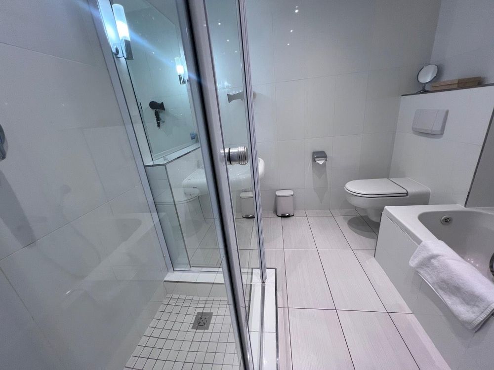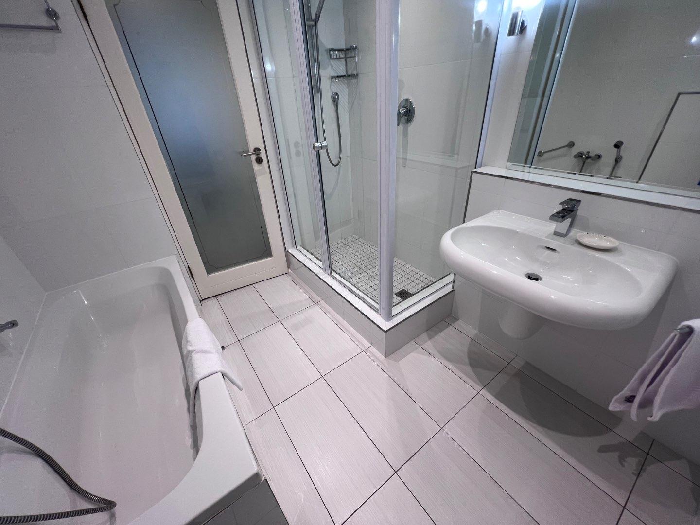 Two bed, two bathroom (MES) ground floor apartment of a main house with private use of outdoor entertainment area and pool. Funicular access to the apartment from street level. Street parking.