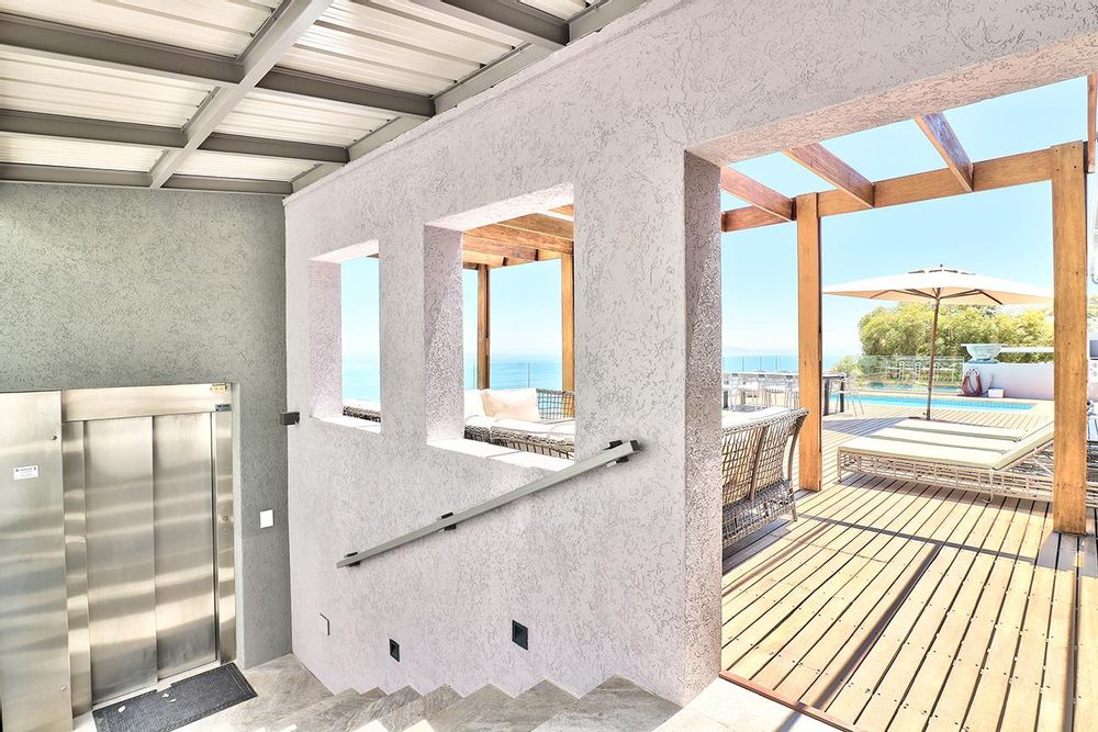 Secluded back garden area, wine cellar, elevator access, double garage and multiple off street parking.