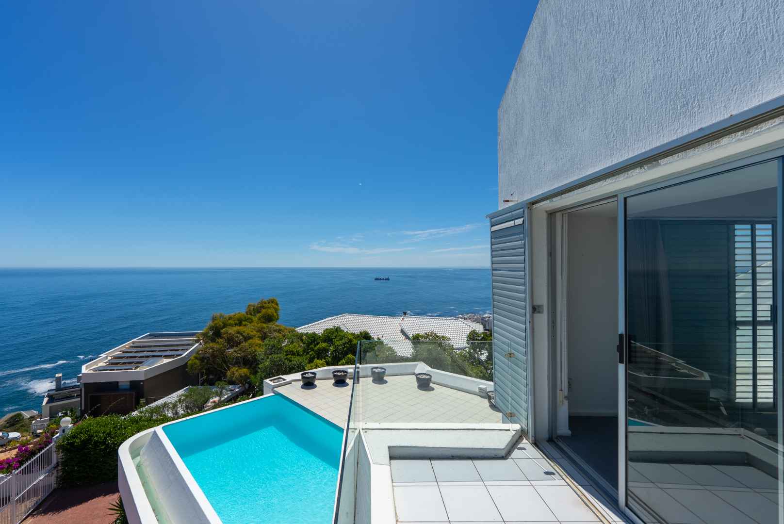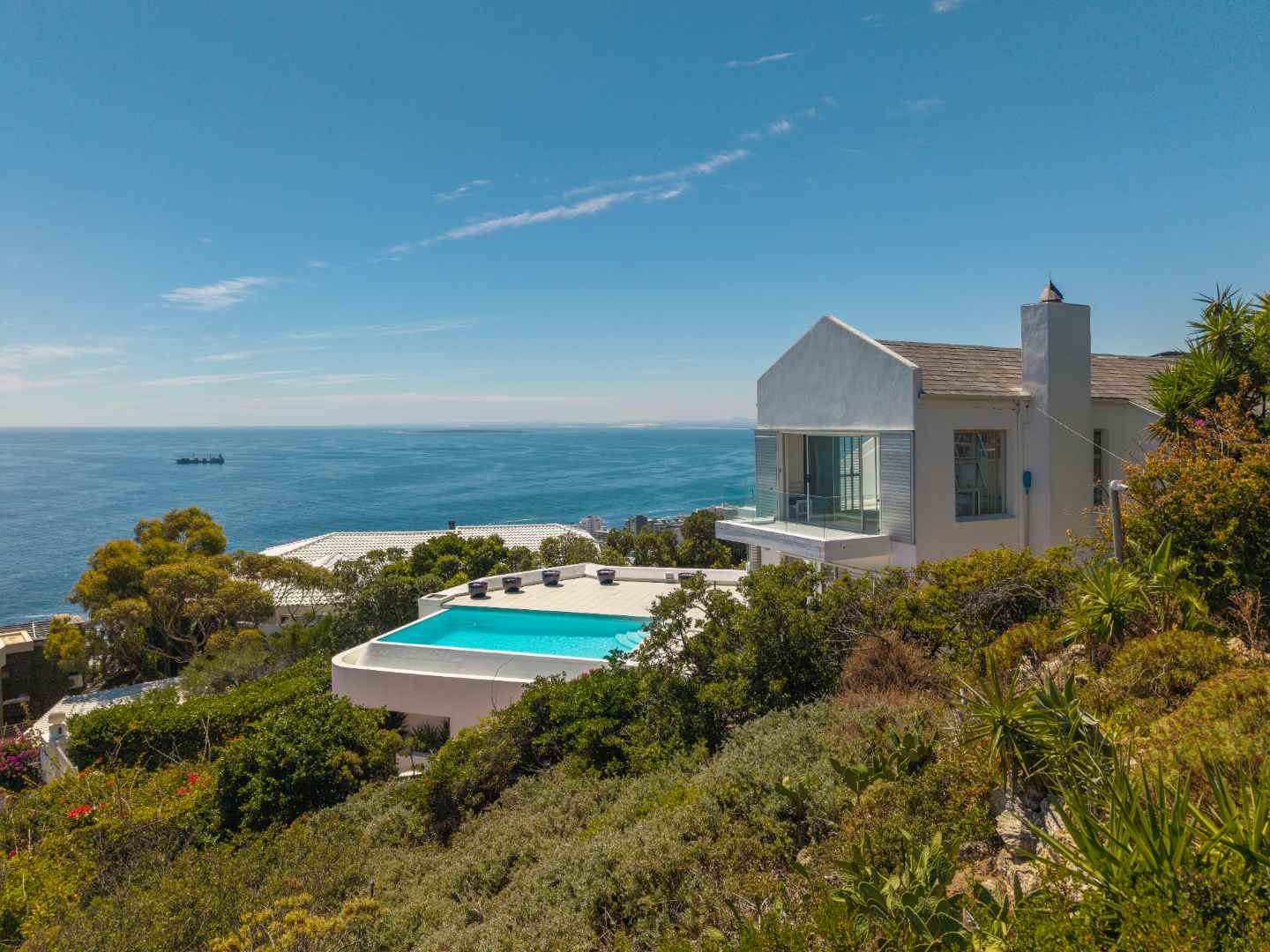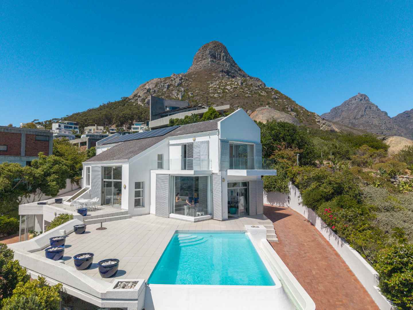 Accessed via a private road leading to the front gates, this property offers both security and seclusion. Despite its tranquil setting, it is conveniently located just minutes away from Cape Town’s finest beaches, renowned restaurants, and world class amenities.