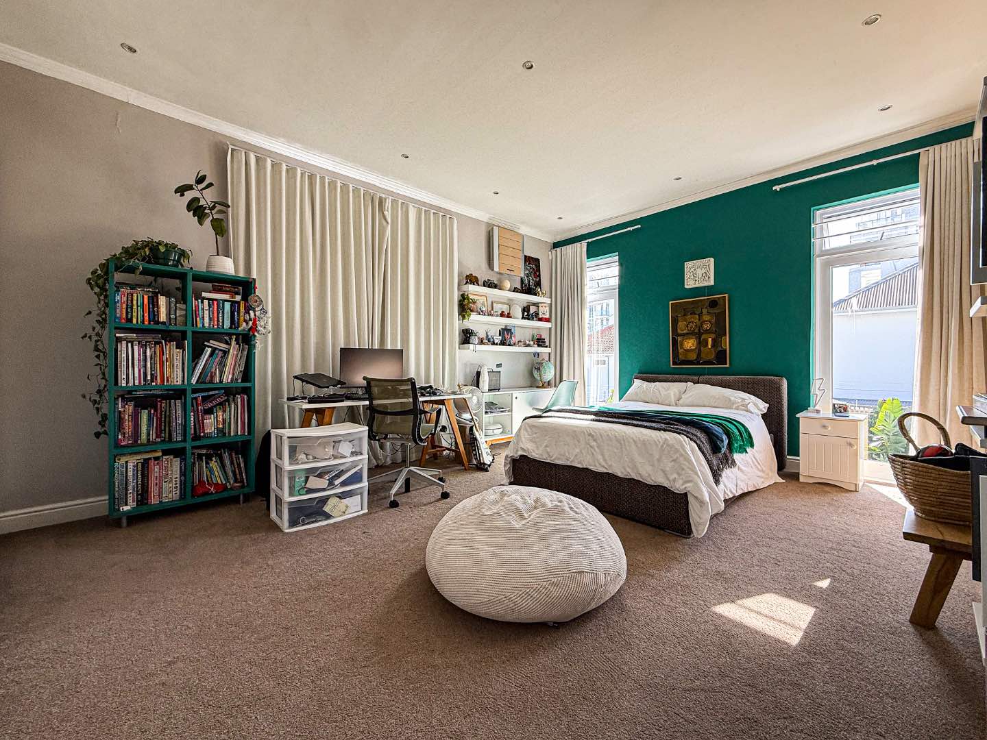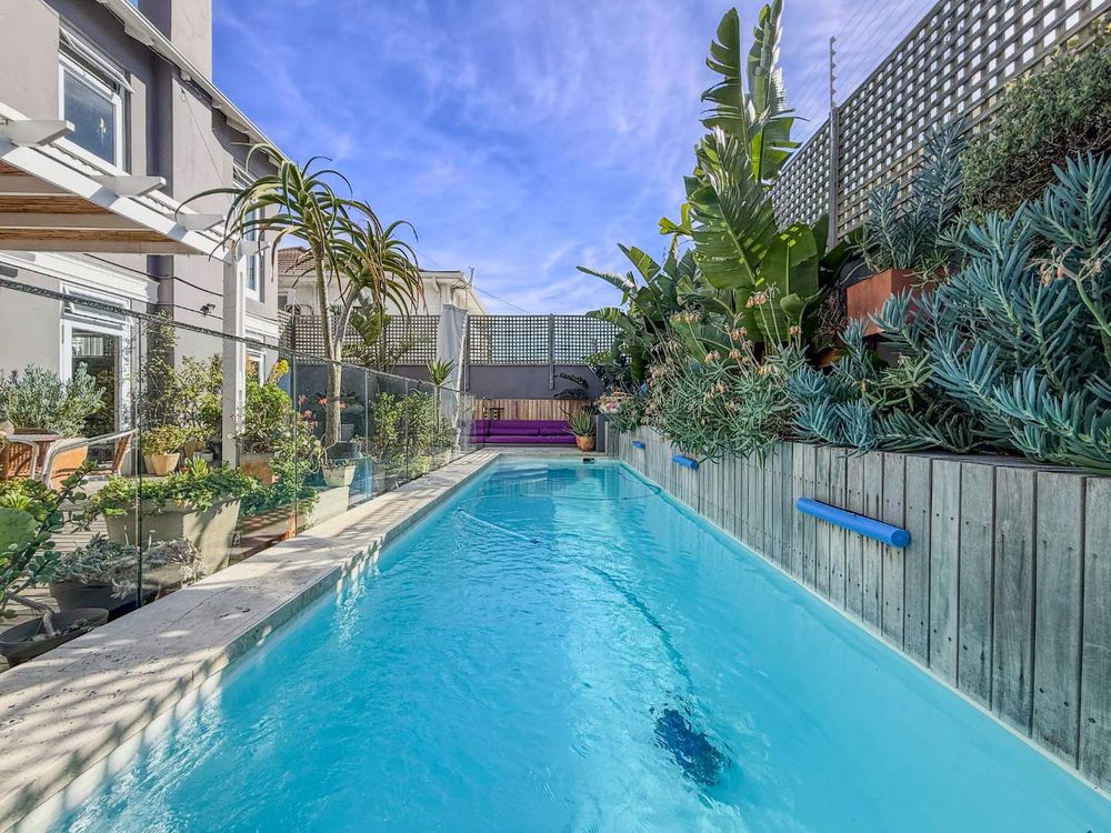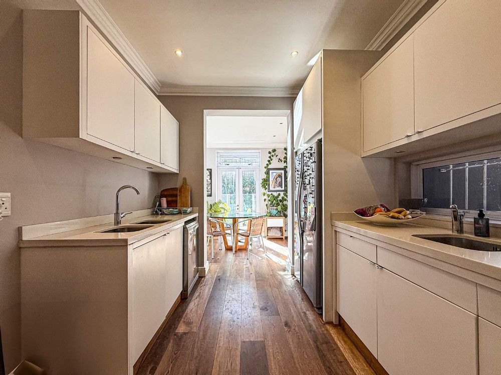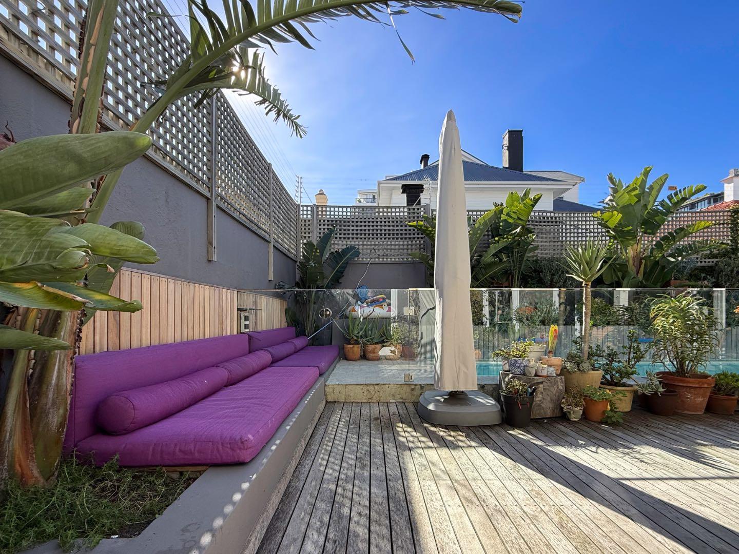 Seamless indoor-outdoor flow from lounge to sun-drenched, plant-filled deck. Engineered wooden floors throughout