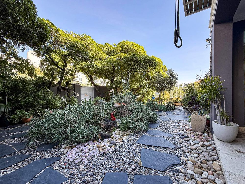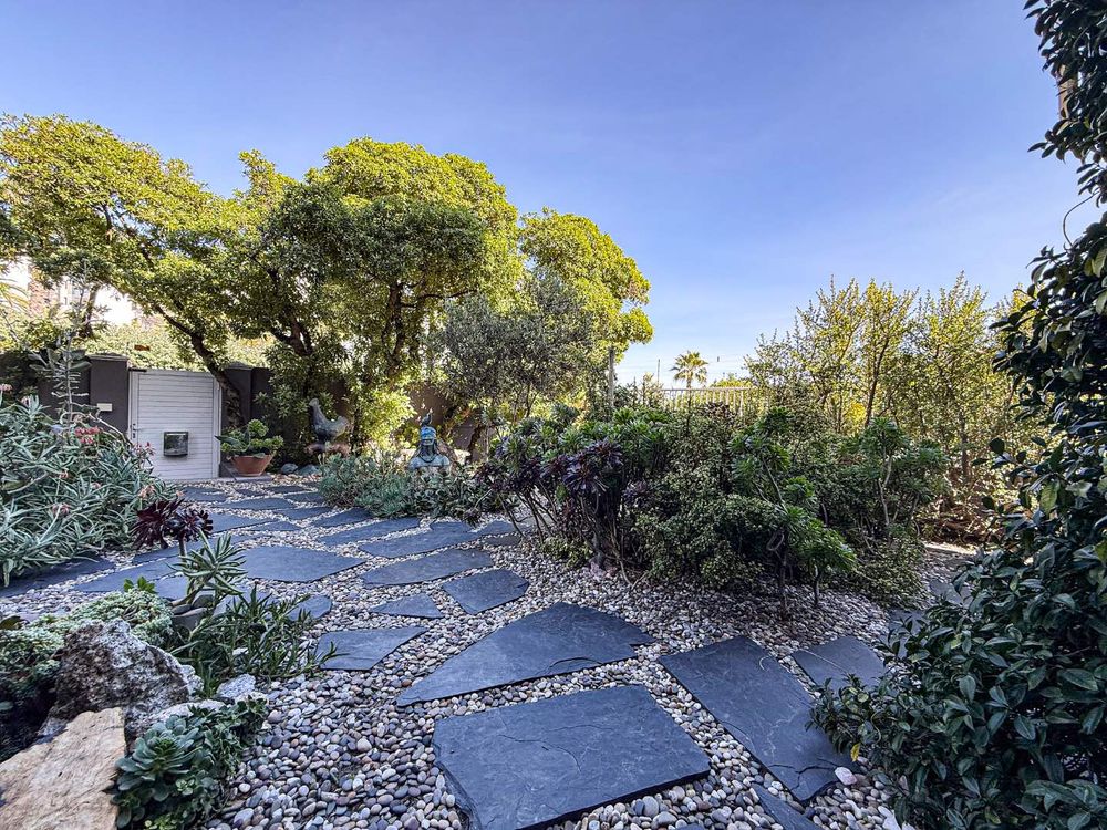 The lush, water-wise front garden features the potential for a lawn addition, ideal for families or entertainers.
