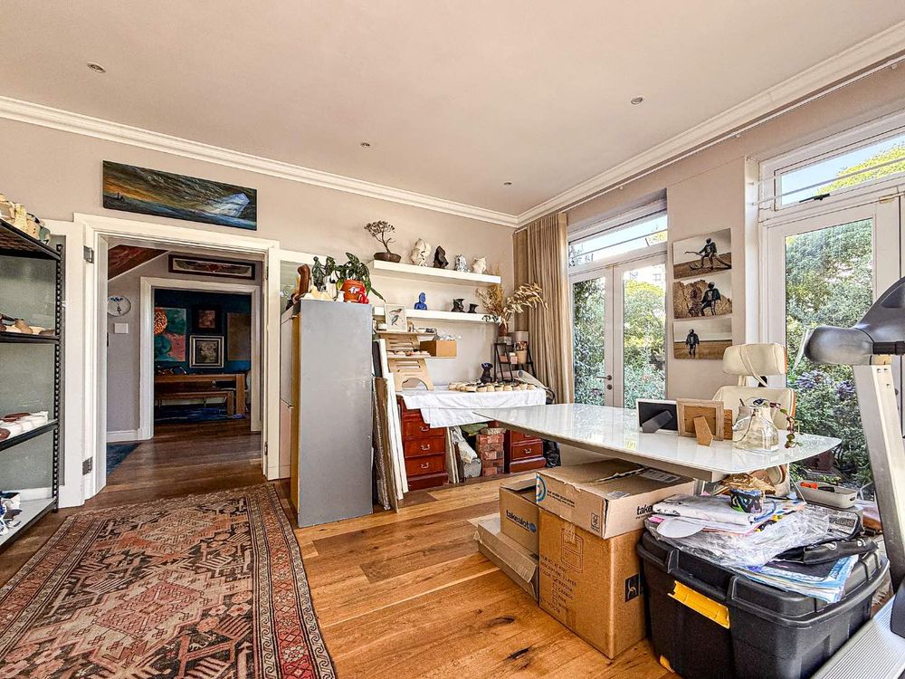 Elegant dining room with wood-burning fireplace Sunny bright Versatile family room or executive home office