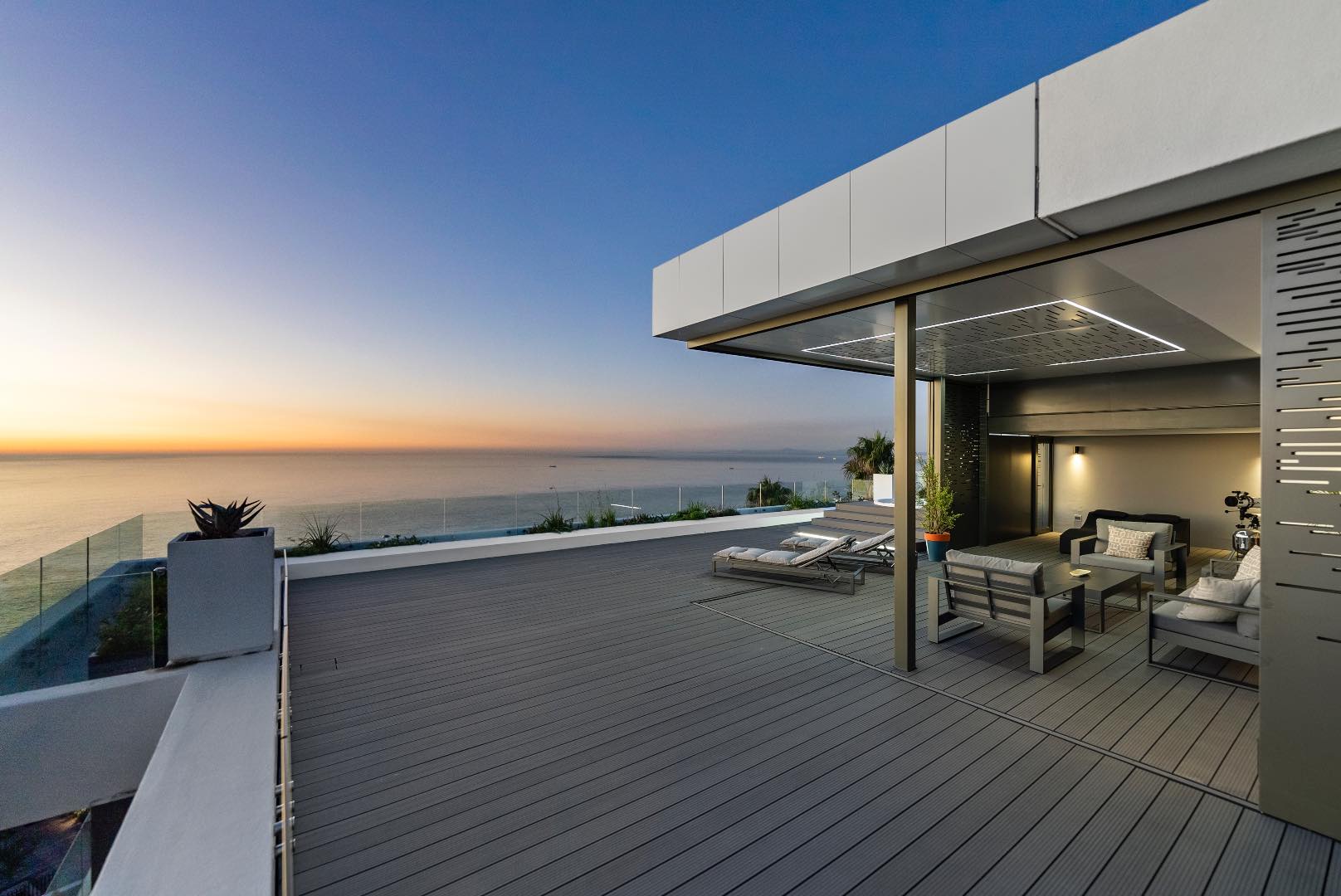 Step into a flowing open plan living space where floor to ceiling glass dissolves the boundary between indoor serenity and outdoor splendour. Entertain or unwind on the expansive covered terrace, complete with a jacuzzi, your front row seat to Cape Town’s famous sunsets and star filled skies.