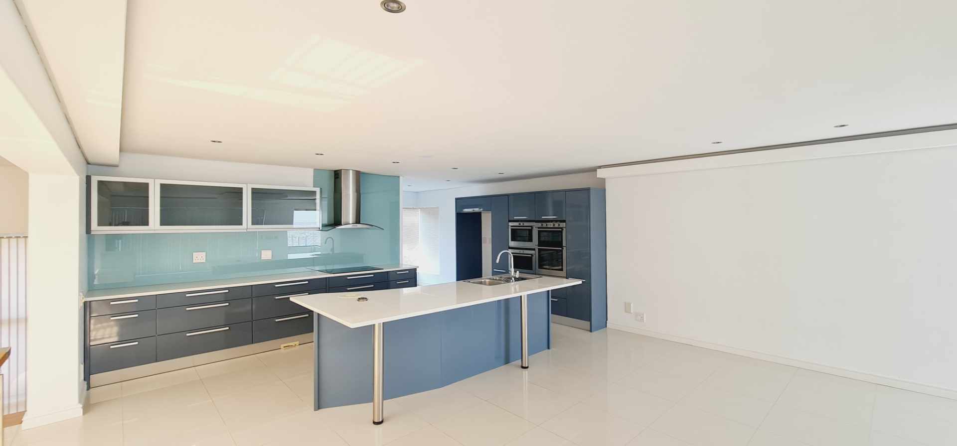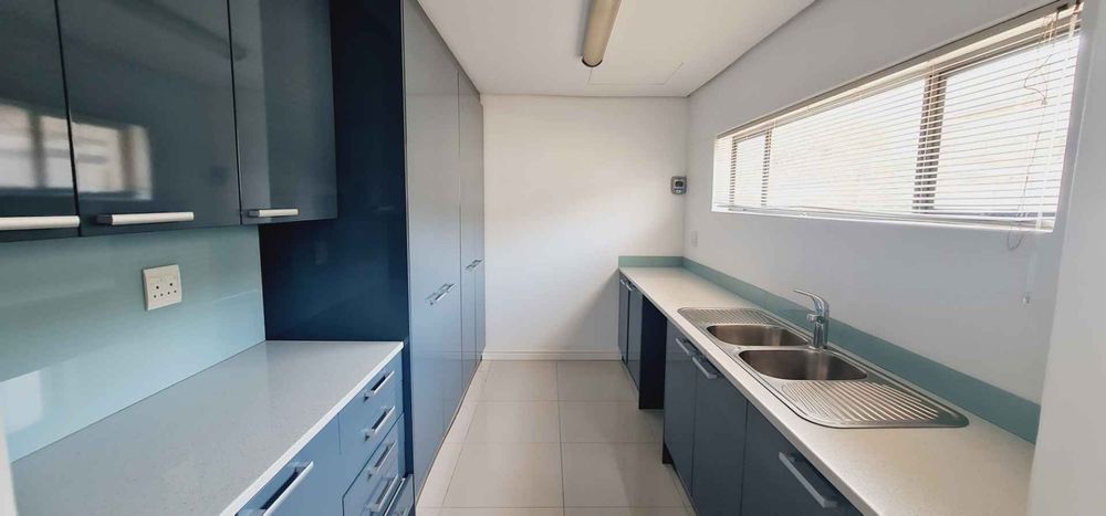 Upstairs, the open-plan kitchen forms the heart of the home, perfectly positioned to capture the magnificent views of Table Mountain while flowing seamlessly into the TV and family lounge. A separate scullery and laundry area ensure practicality without compromising the clean, open design.