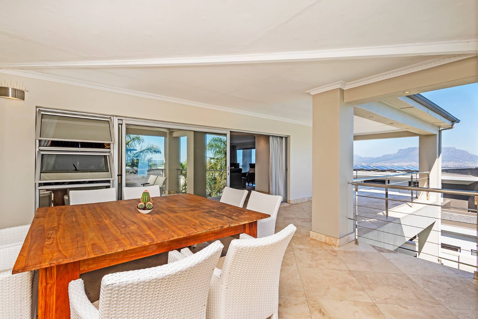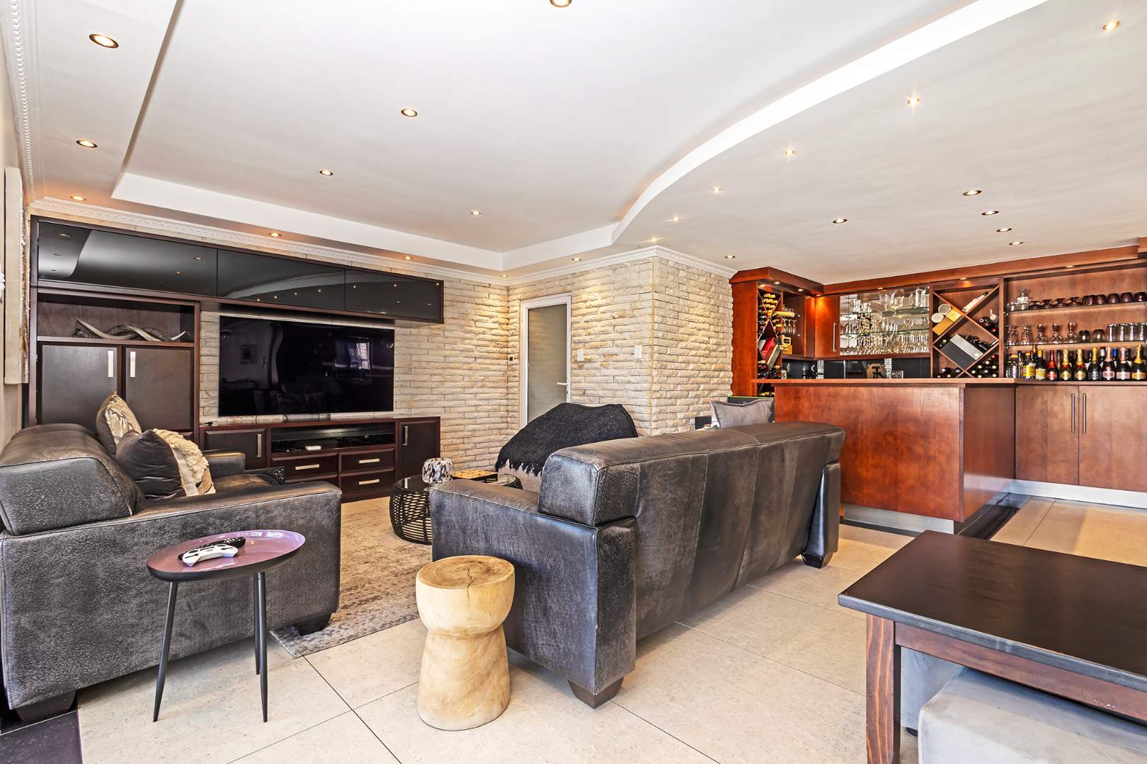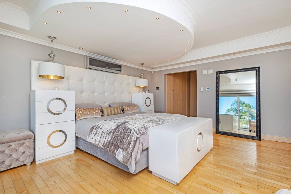 The home offers four beautifully proportioned bedroom suites,four located upstairs, each capturing breathtaking views across Cape Town, while a luxurious guest suite on the ground level enjoys its own private garden entrance. A dedicated study provides the ideal work-from-home environment, balancing productivity with tranquillity. Upstairs, an expansive entertainment lounge with a fitted bar, indoor braai, and view deck creates the perfect setting for both relaxed family evenings and vibrant gatherings, all set against the iconic backdrop of Table Mountain.
