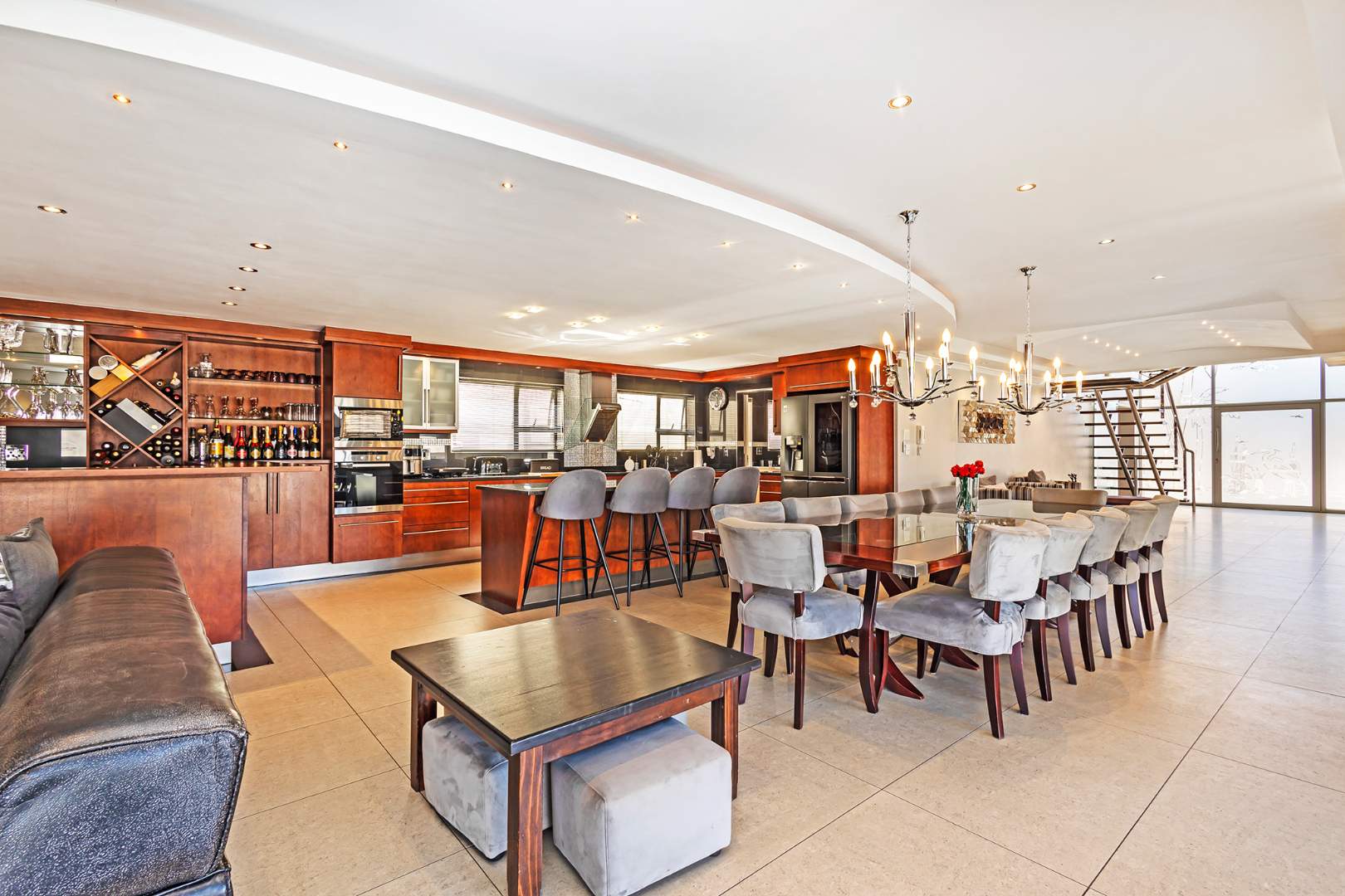 Designed with both practicality and luxury in mind, the home features a full solar system with inverter for uninterrupted living, triple automated garages with additional secure parking, and well-appointed staff accommodation that can easily be transformed into a private flatlet — ideal for extended family, guests, or additional income potential.