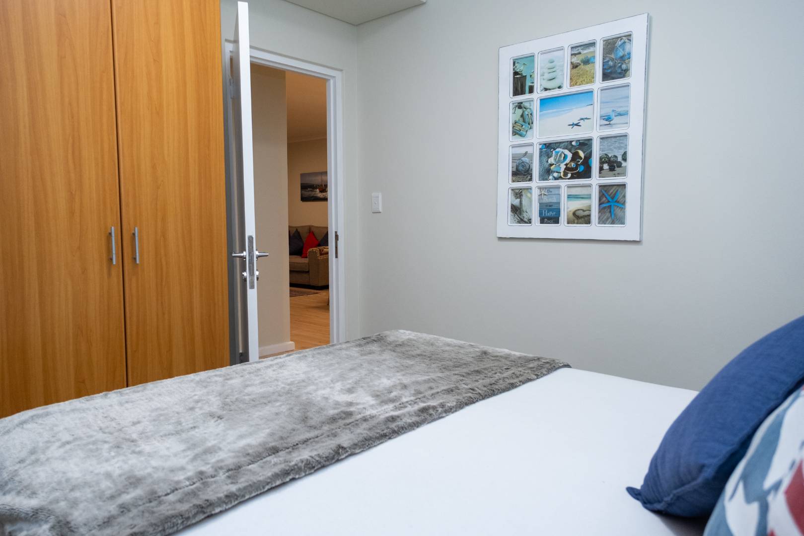 Fall asleep to the sound of the waves, smell the ocean, watch glorious sunsets, or enjoy the beauty of Table Mountain from this lovely, very comfortable and immaculate apartment in Horizon Bay. 2 Bedrooms, 2 bathrooms, and 2 basement parking bays add to the comfort, apart from the pleasure of being across the road from the ocean (for that daily jogging or hiking or biking), walking distance to the restaurants, My Citi Bus, shops, and other amenities. The kitchen is well appointed, with ample cupboard space, a large breakfast counter with a dishwasher and combo washer/dryer. There is a study area with shelves and workspace. The main bedroom has an ensuite shower, basin, and toilet. For the second bedroom there is the family bathroom with a bath and shower over the bath. A large open balcony with 180° ocean- and beautiful Table Mountain views can be accessed from the living area and the main bedroom.