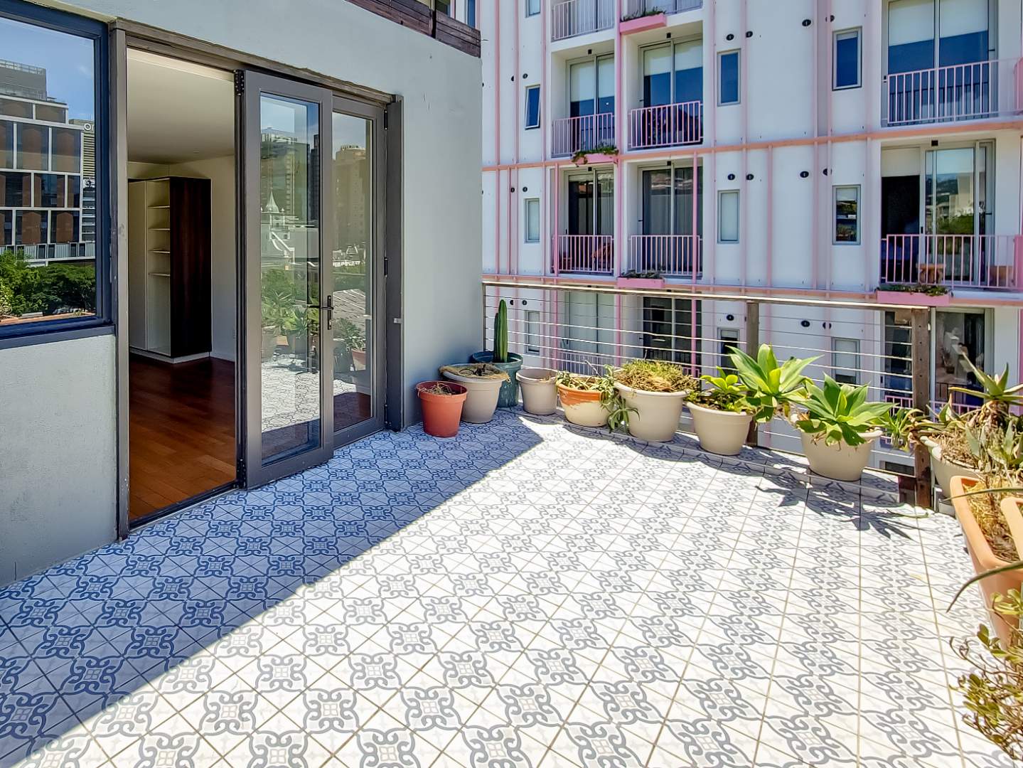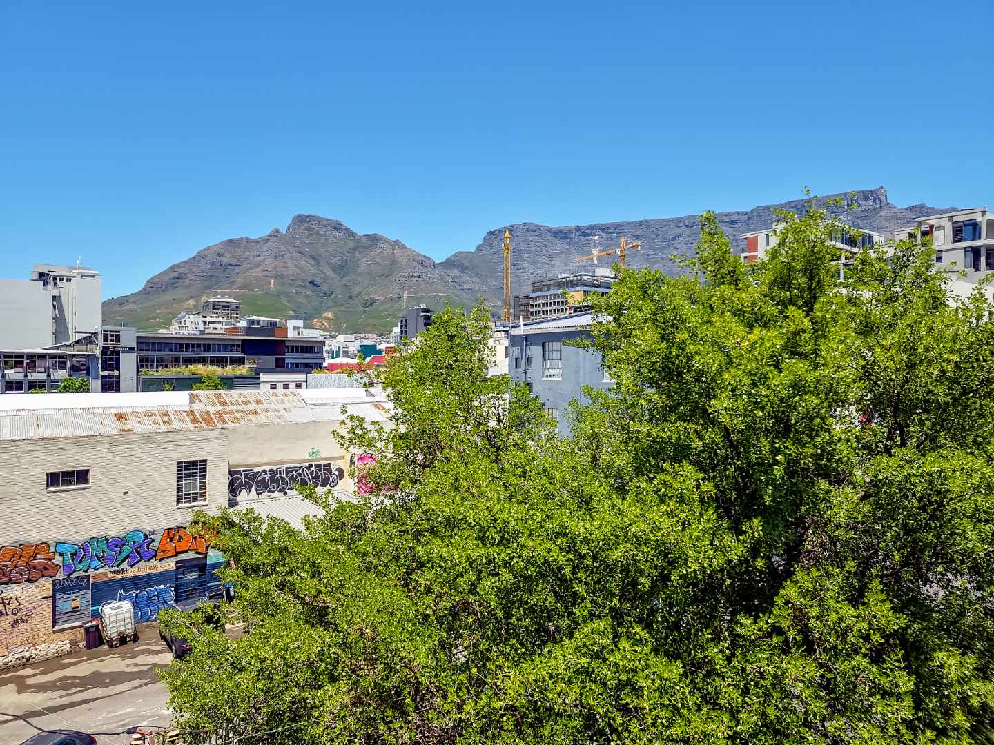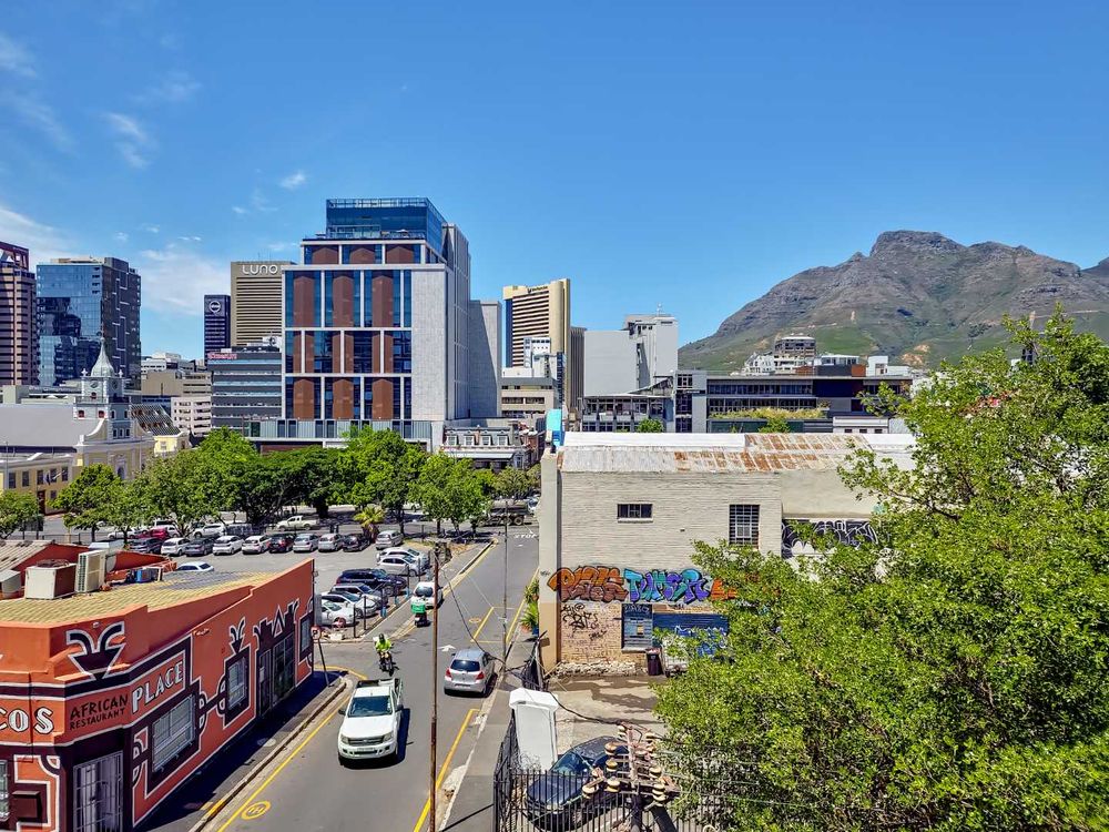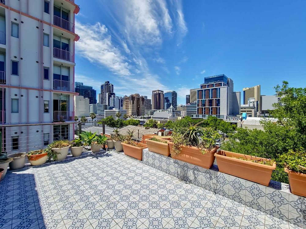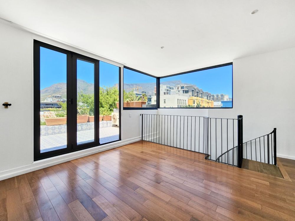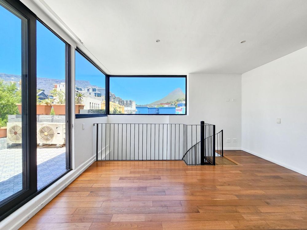3 beds, 2 baths over 3 levels, with a balcony overlooking Cape Town, with Table Mountain, Lions Head and Signal Hill views.