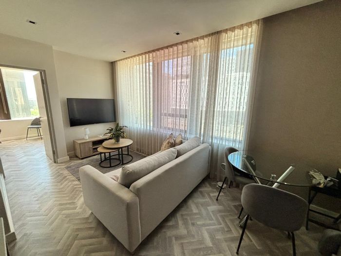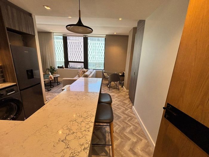 Luxurious one-bedroom apartment with parking, balcony views, modern amenities, and prime location near Sea Point Promenade and Green Point Urban Park.