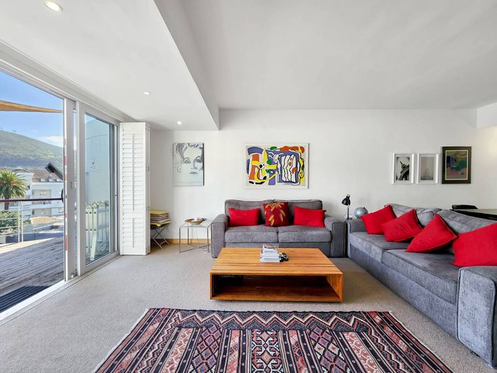 Vibrant Kloof Street living with panoramic Signal Hill and Lion's Head views, split-level apartment offering abundant light, two balconies and two bedrooms, plus two secure parking bays.