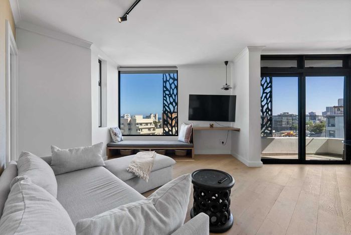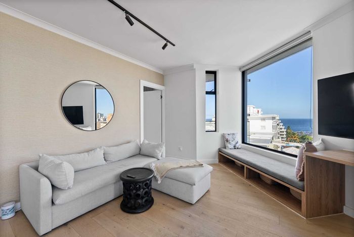 Live the Atlantic Seaboard lifestyle on trendy Arthur's Road in Sea Point — sixth-floor corner apartment with ocean and city views, private balcony, two bedrooms, two baths and secure parking.