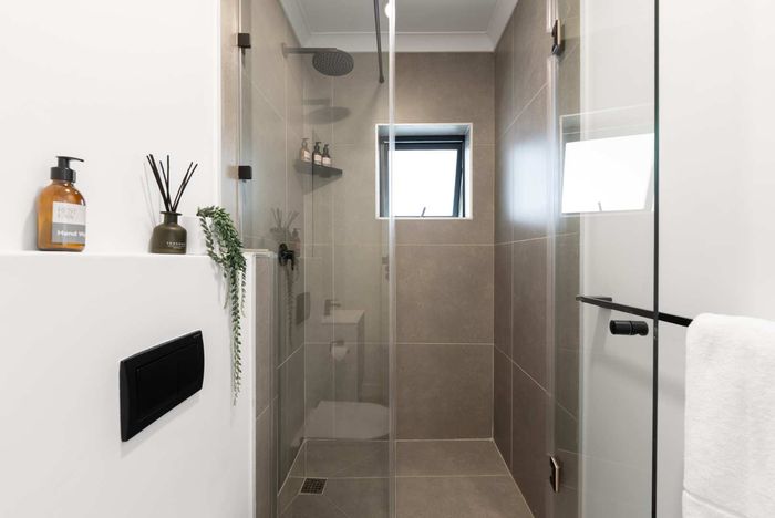 Effortless lock-up-and-go living in Penzance Estate near Cape Town, featuring a covered entertainment porch with fire pit and dipping pool, three bedrooms, two bathrooms and double garage.