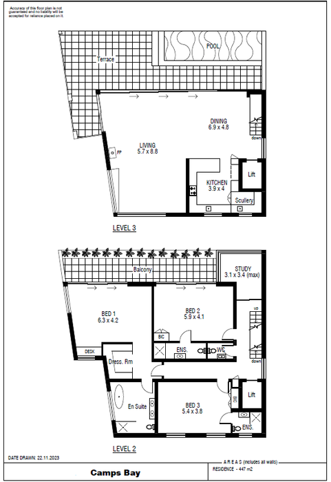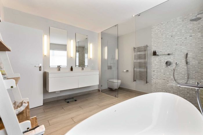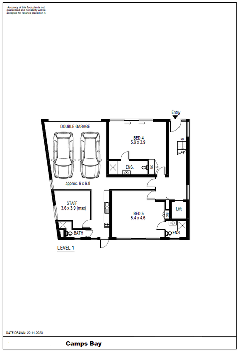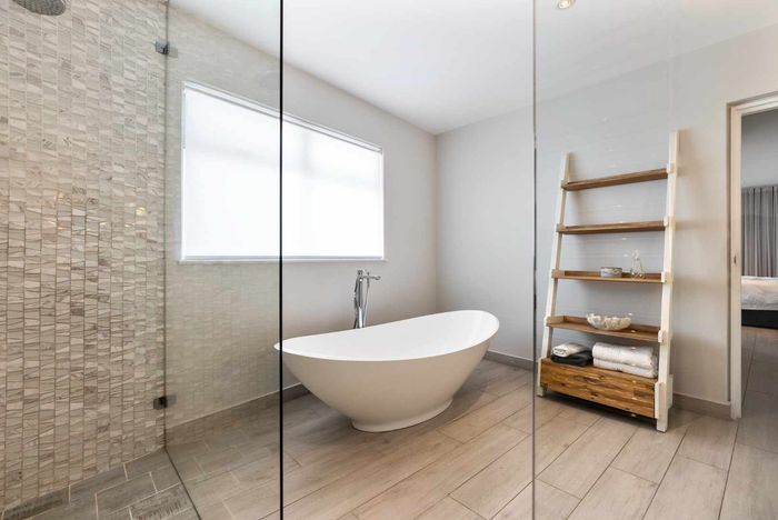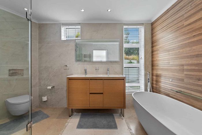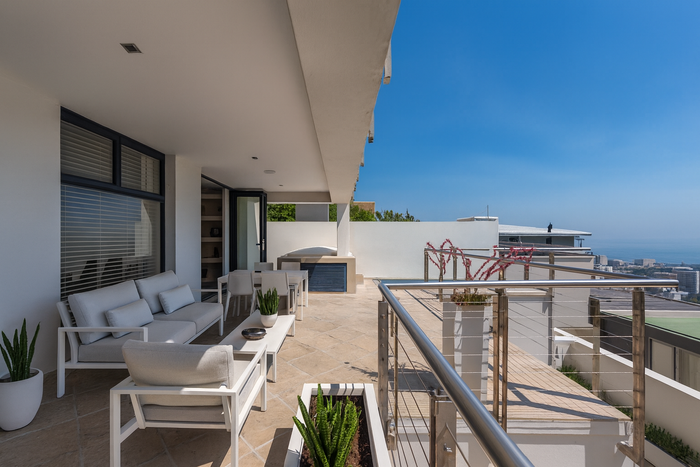 Triple-story property near Camps Bay Beach, featuring 5 bedrooms, 5.5 bathrooms, and a double garage.