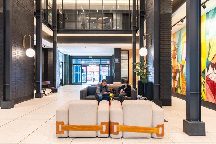 Bright, airy office in a lively business precinct with abundant natural light, easy public-transport access and nearby eateries — 151 m² with optional parking bays available.