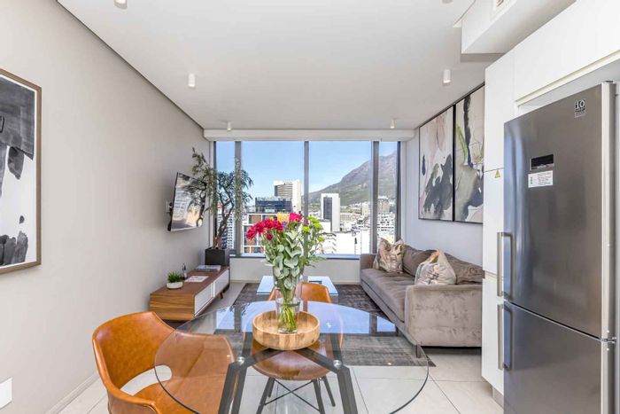 Live in De Waterkant’s vibrant urban playground with sweeping Table Mountain and city views, open-plan designer kitchen, one-bedroom one-bath, secure covered parking — steps from V&A Waterfront.