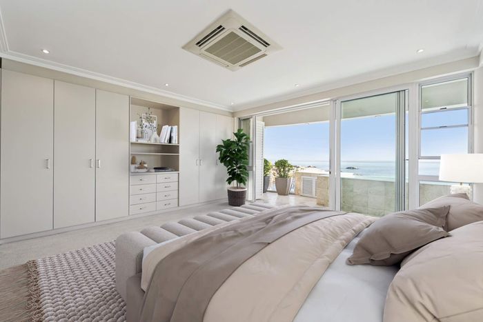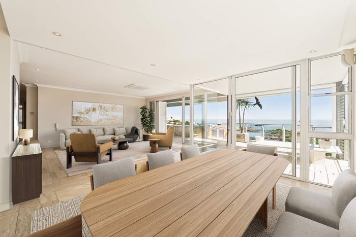Wake to ocean views and Signal Hill trails from this corner Sea Point apartment, with open-plan living spilling onto a sea-facing balcony and updated kitchen. 3 beds, 2 baths, garage.