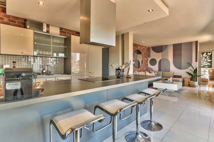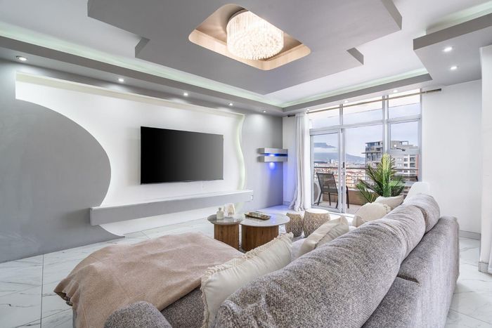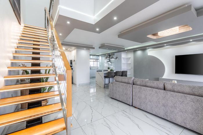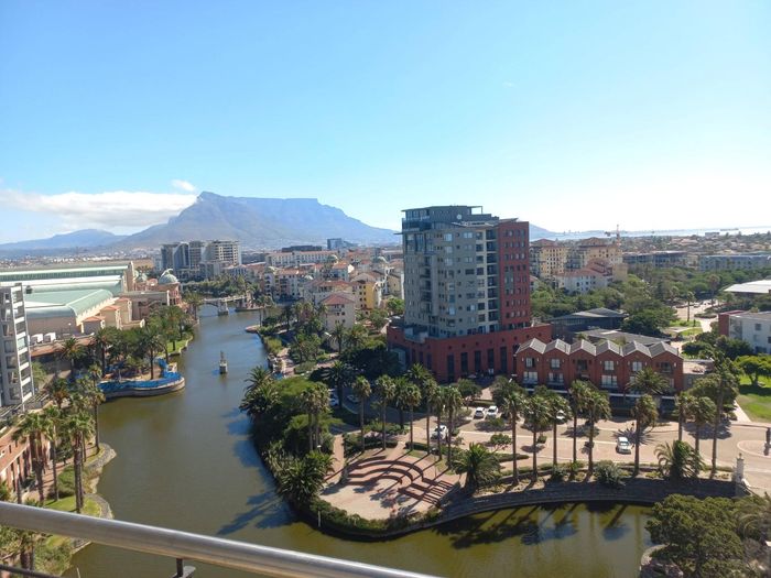 Elevated Century City living with Table Mountain and Intaka Island views from two patios; communal pool and spa, duplex penthouse with 3 beds, 2.5 baths and two parking bays.