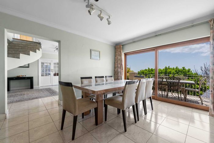 Elevated coastal living in Fernwood Estate, Knysna, with estuary and Heads views, double-volume glazing and a raised entertainment terrace with pool. Four bedrooms, 3.5 baths, double garage.