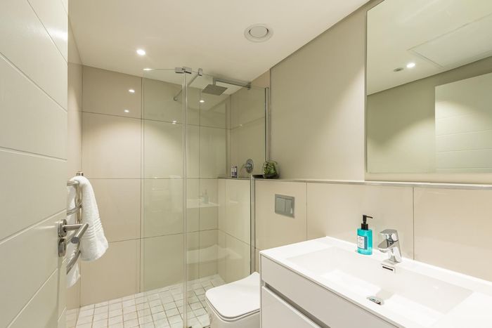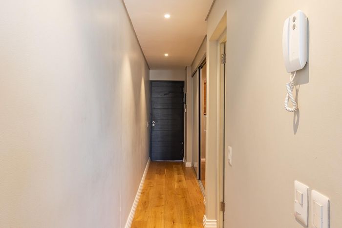 Embrace Sea Point's cosmopolitan beachside lifestyle near shops and transport; air-conditioned open-plan living opens to a balcony with sliding doors. Two bedrooms, one bath, tandem parking.