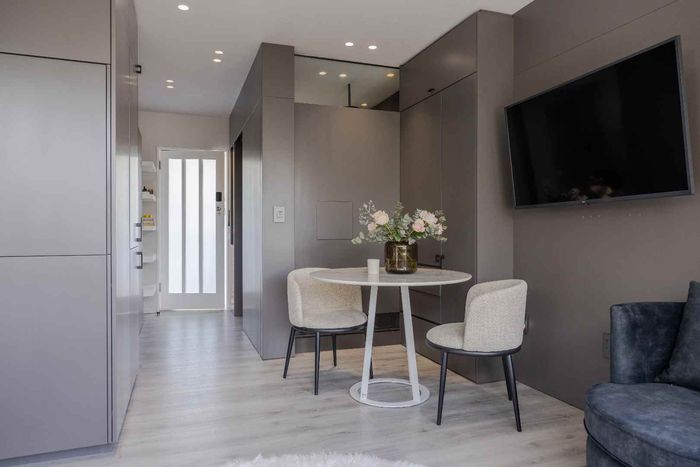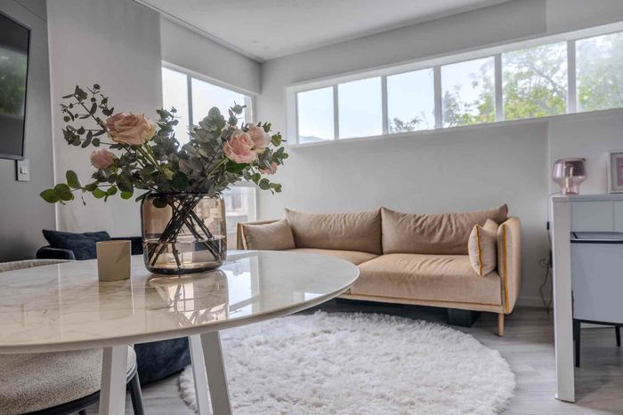 Coastal Sea Point living with easy access to the promenade and cafés; partly furnished double-story townhouse featuring an elevated entertainer's deck, weekly cleaning, two bedrooms and two baths.