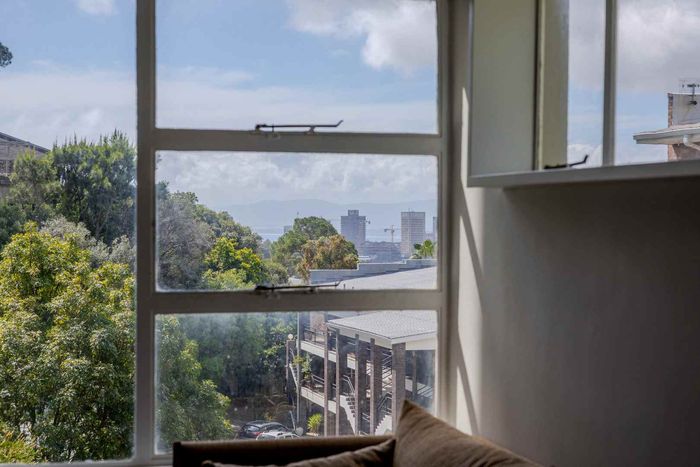 Live elevated in Tamboerskloof with easy access to mountain trails and vibrant eateries; fully renovated apartment with sweeping harbour and city views, one bedroom, one bathroom, secure parking.