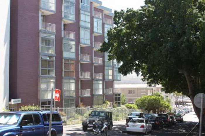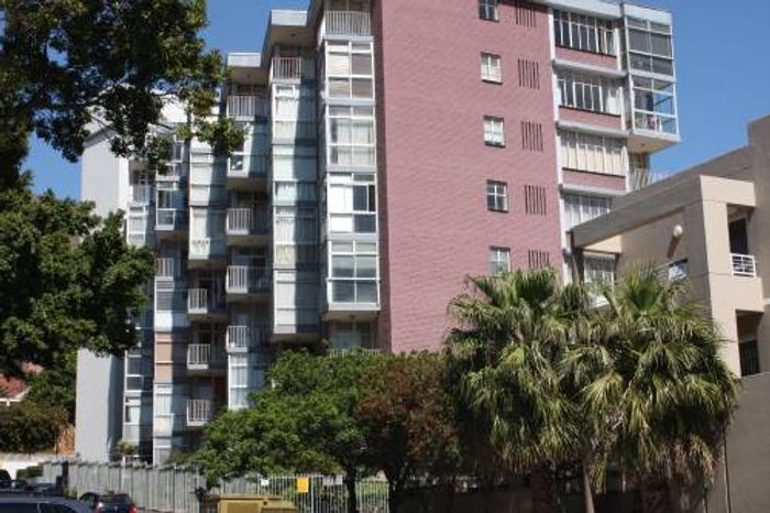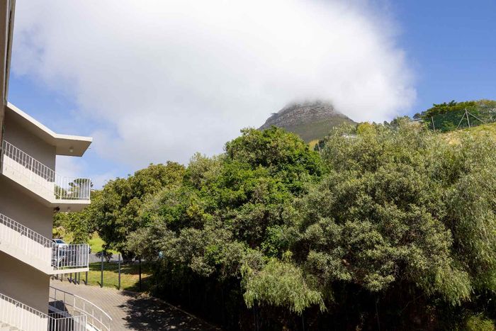2-bedroom flat with parquet flooring, built-in cupboards, balcony views of Table Mountain, and close to cafes and shops.