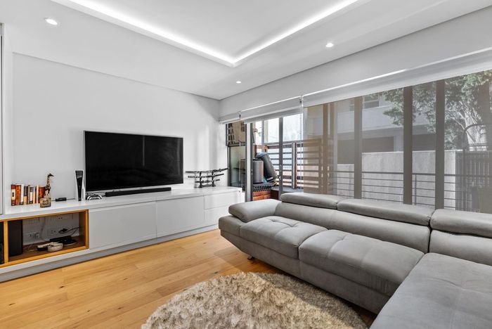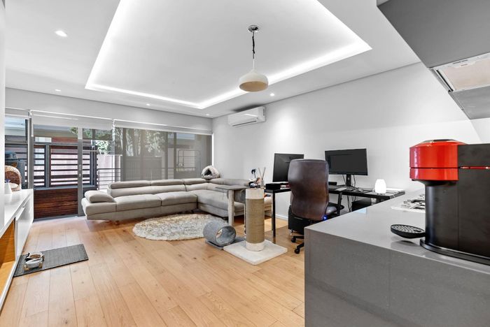 Designed for cultured city living in Gardens, steps to Kloof Street and Company's Garden — open-plan entertaining, designer kitchen, covered balcony with Table Mountain views; three bedrooms, 3.5 baths.
