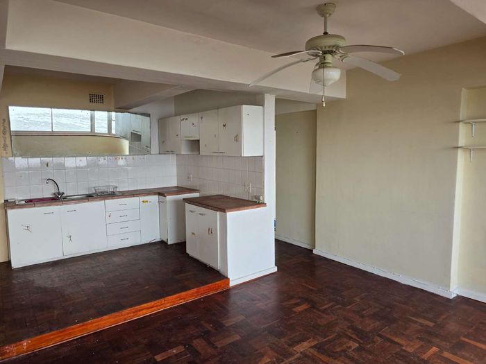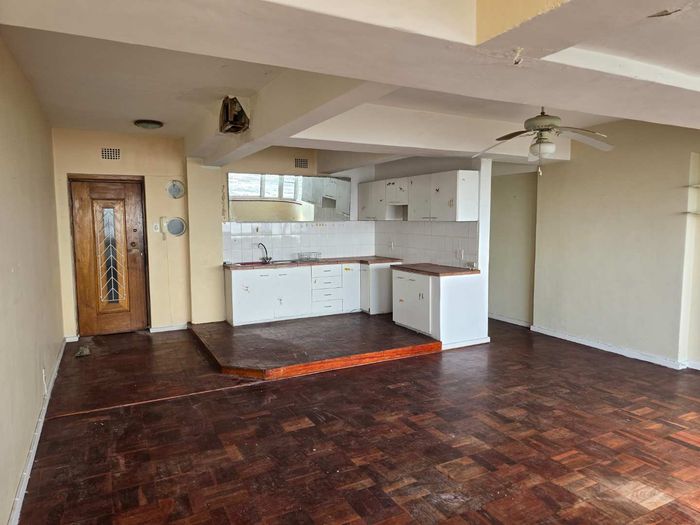 Two-bedroom, two-bathroom property on Beach Road with sea views and parking. Renovation opportunity in a prime location.