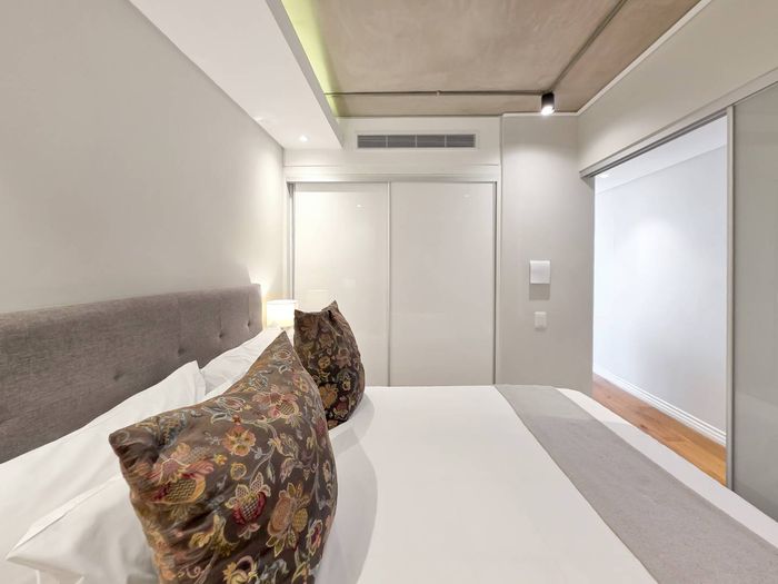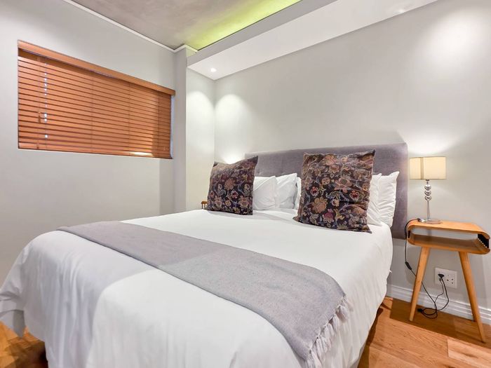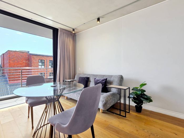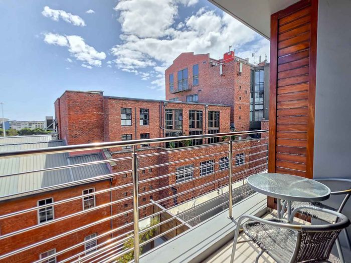 Enjoy vibrant De Waterkant city living with a private balcony, Airbnb-ready layout and rooftop pool and bar with 360° Table Mountain and Atlantic views — one bedroom, one bathroom, covered parking.
