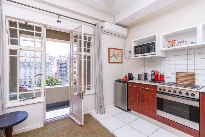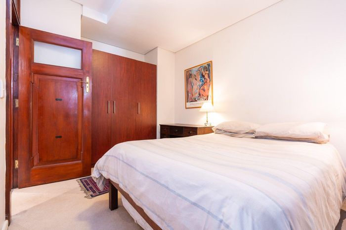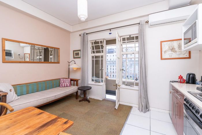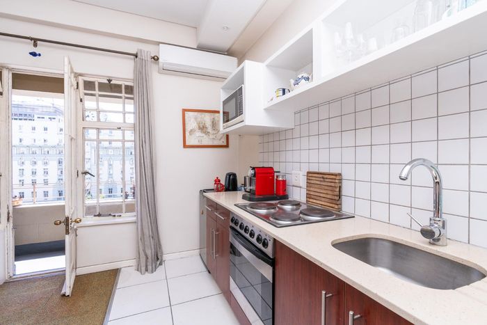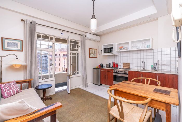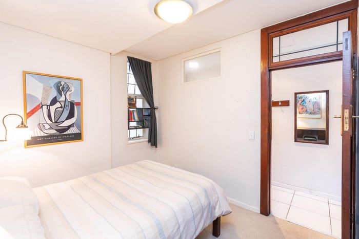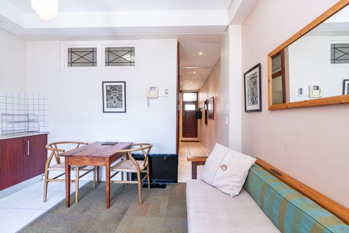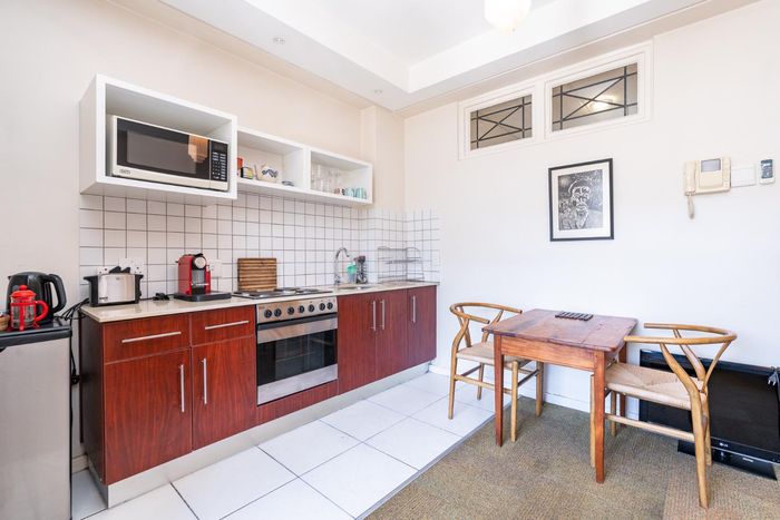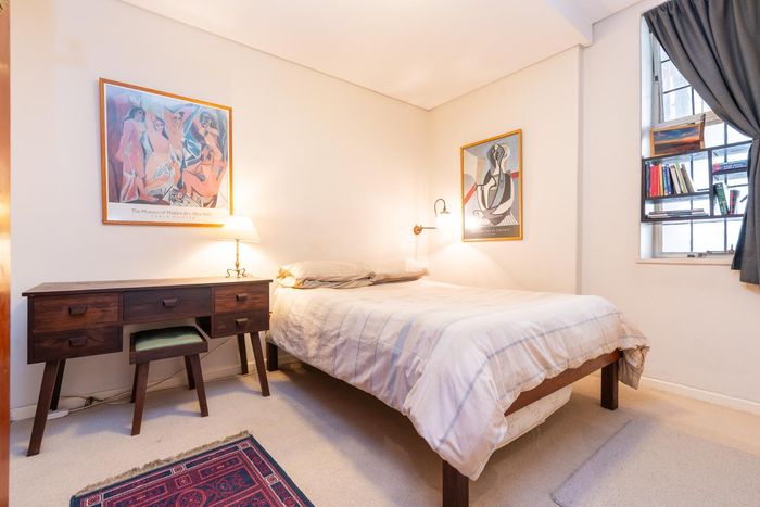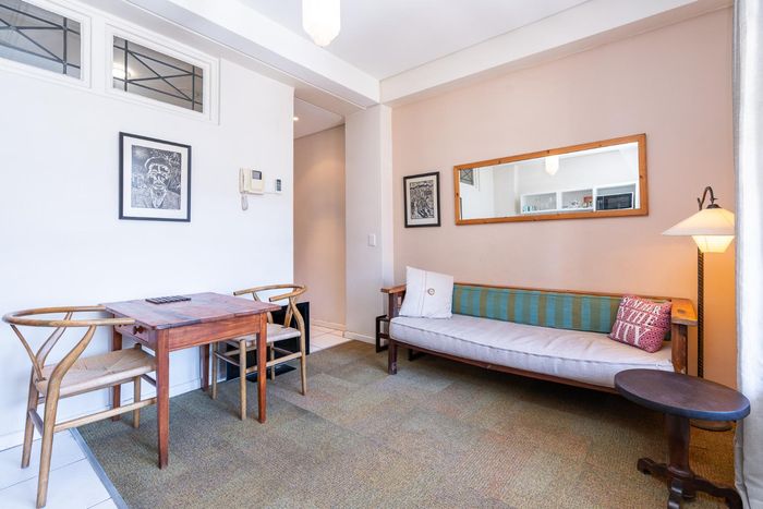 Two-bedroom apartment in Cape Town's cultural quarter, featuring en-suites, essential appliances, secure parking, and rooftop pool access.