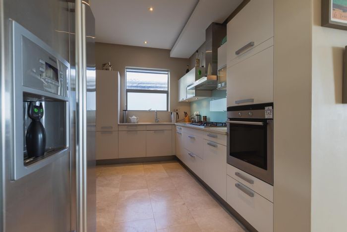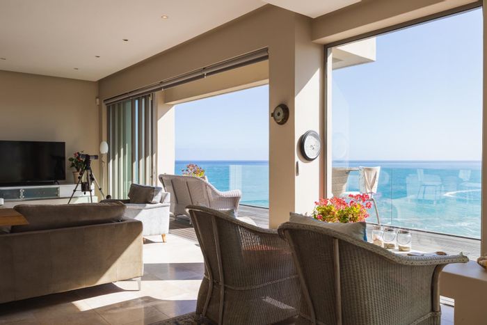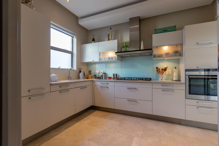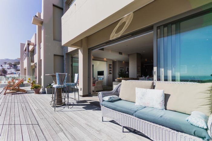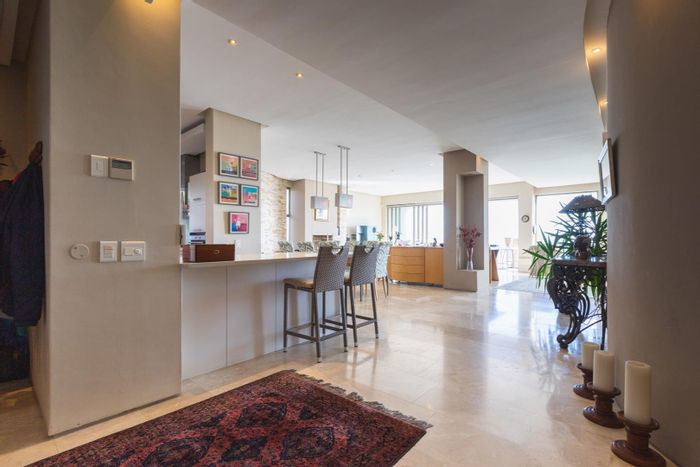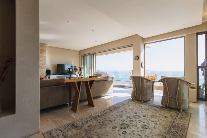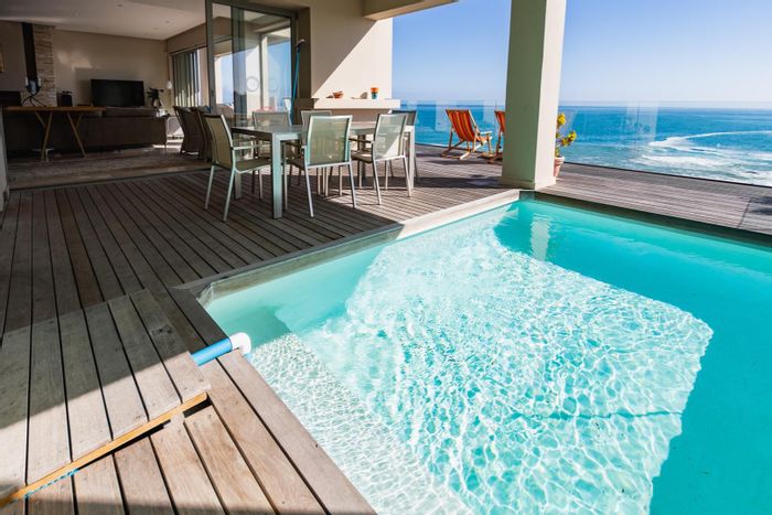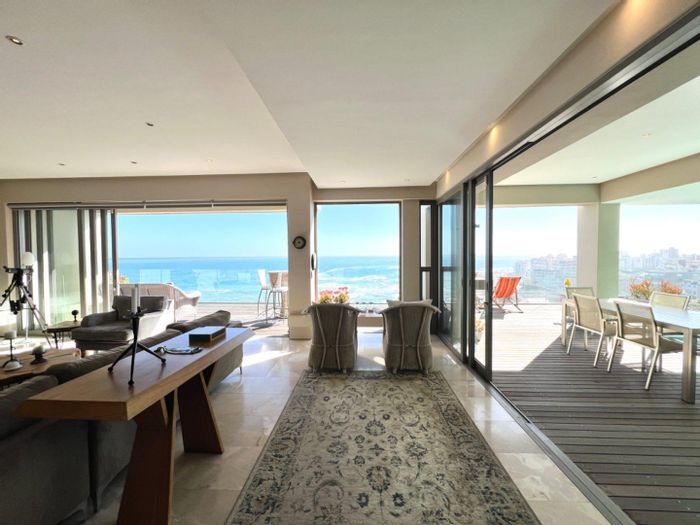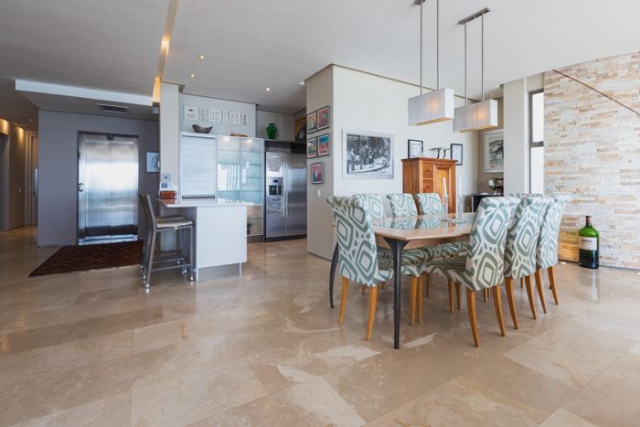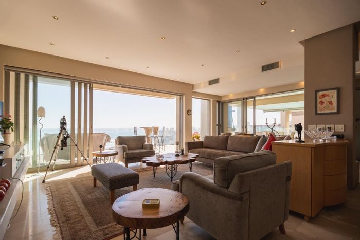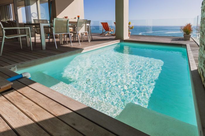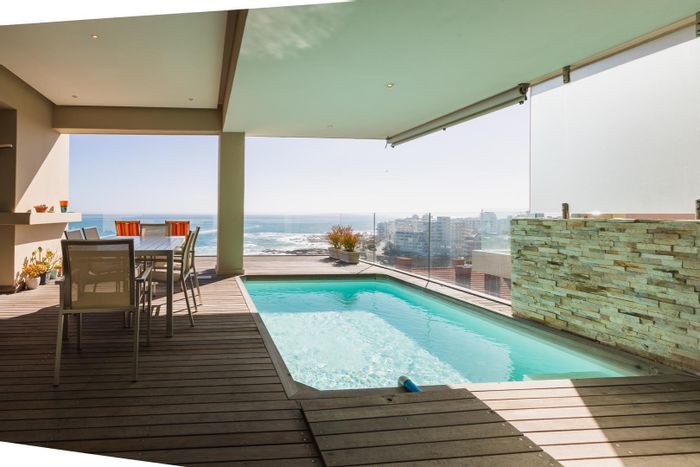 Penthouse in heart of Green Point, footsteps from cafés and top restaurants, with panoramic V&A Waterfront and Atlantic views, private terrace with elevated splash pool; 3 en‑suite bedrooms, 6 parking.