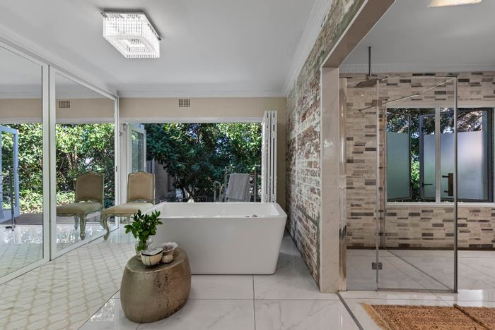 5-bedroom, 5.5-bathroom villa on 3000 m² with 860 m² floor size, 3 garages, and stunning views of Table Mountain.
