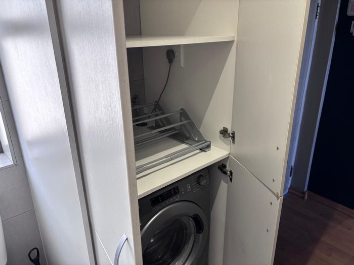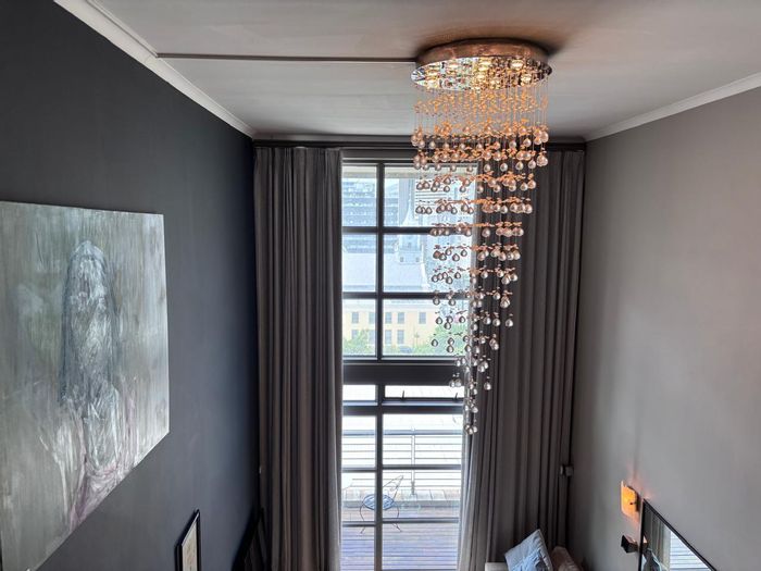 Enjoy seaside city living minutes from Sea Point promenade and cafés in Quendon Mansions — a character-rich apartment with original wooden floors and brass chandeliers, two bedrooms, one bathroom.