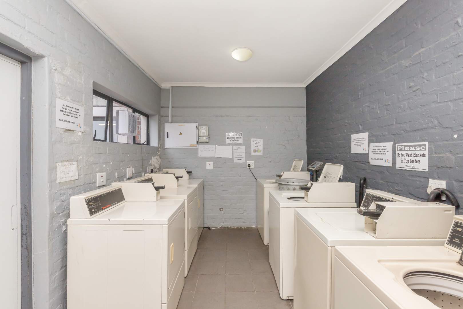 - A laundry facility with coin-operated appliances