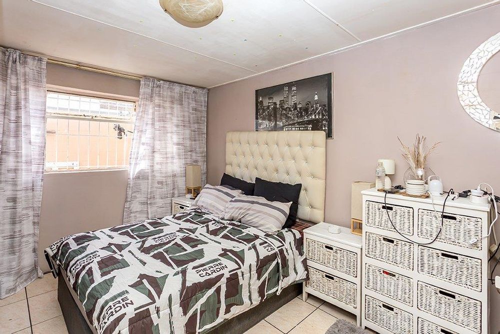 At the rear of the property, you'll discover a neat one-bedroom flatlet. This self-contained unit includes a bedroom, kitchen, and bathroom, offering privacy and independence. The flatlet also boasts its own yard area and a built-in braai, making it an excellent option for guests or as a rental opportunity.