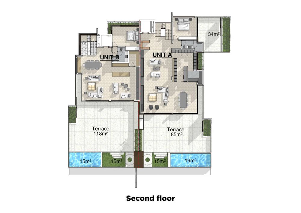 PLEASE NOTE: The 3D renders are generic and of Unit A. All the Villas will be fitted with the same finishes.