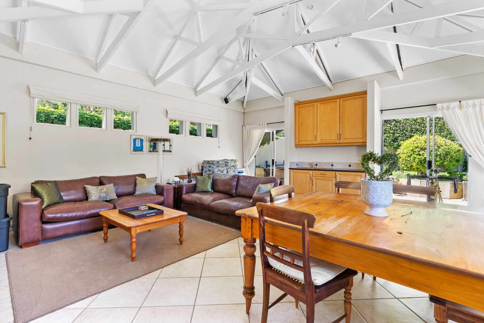 Moving to the third level, the sea-facing main ensuite and additional bedrooms offer spectacular views, and the spacious lounge/family TV/games room with a kitchenette provides flexibility for various activities. The seamless flow to the private entertaining area, including a braai, pool, and manicured garden, ensures that residents and guests can enjoy the surroundings to the fullest.
