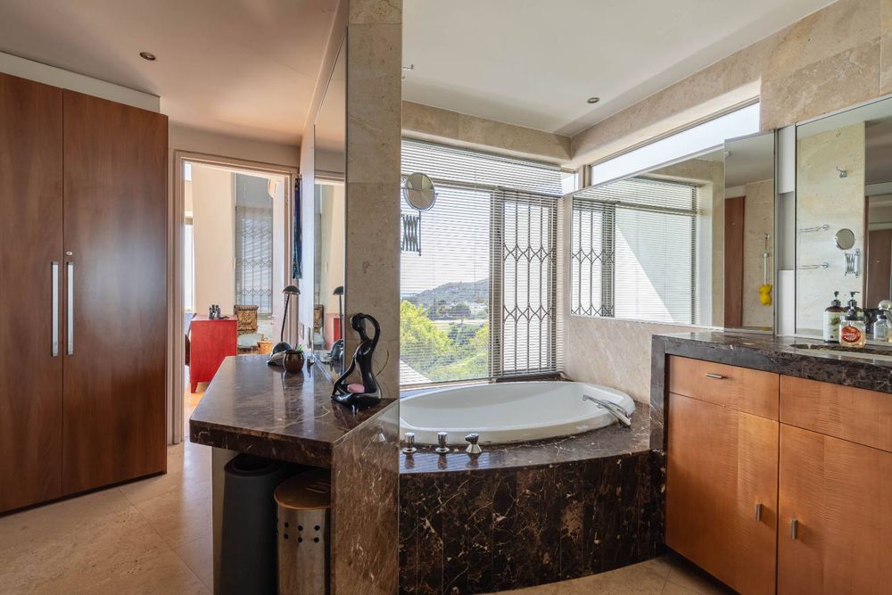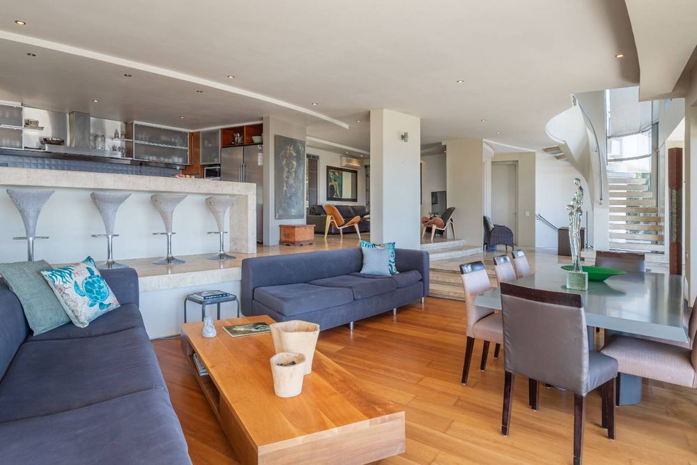 Welcome to this architectural masterpiece by Greg Wright, nestled in an elevated position overlooking the breathtaking Camps Bay beach. This magnificent home offers spectacular 360-degree views, showcasing the majestic Lion's Head and the iconic Twelve Apostles as your daily backdrop.