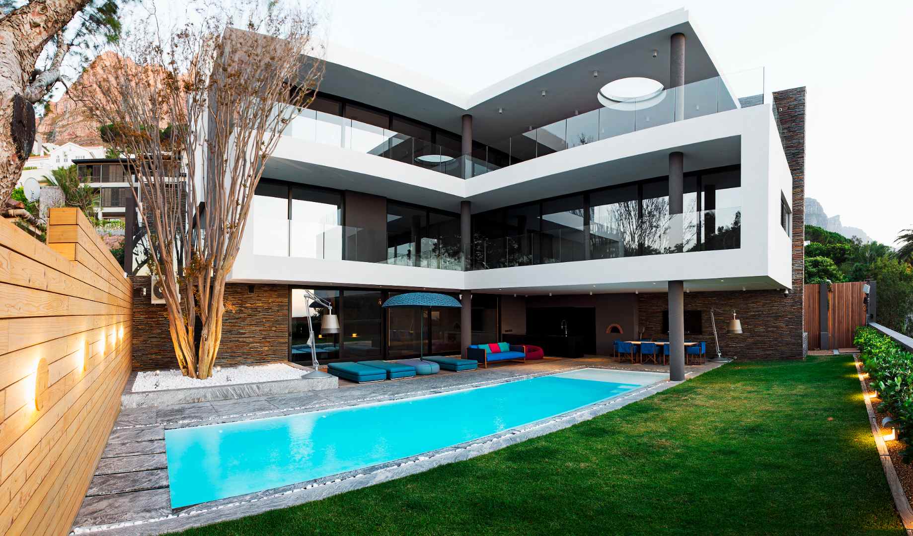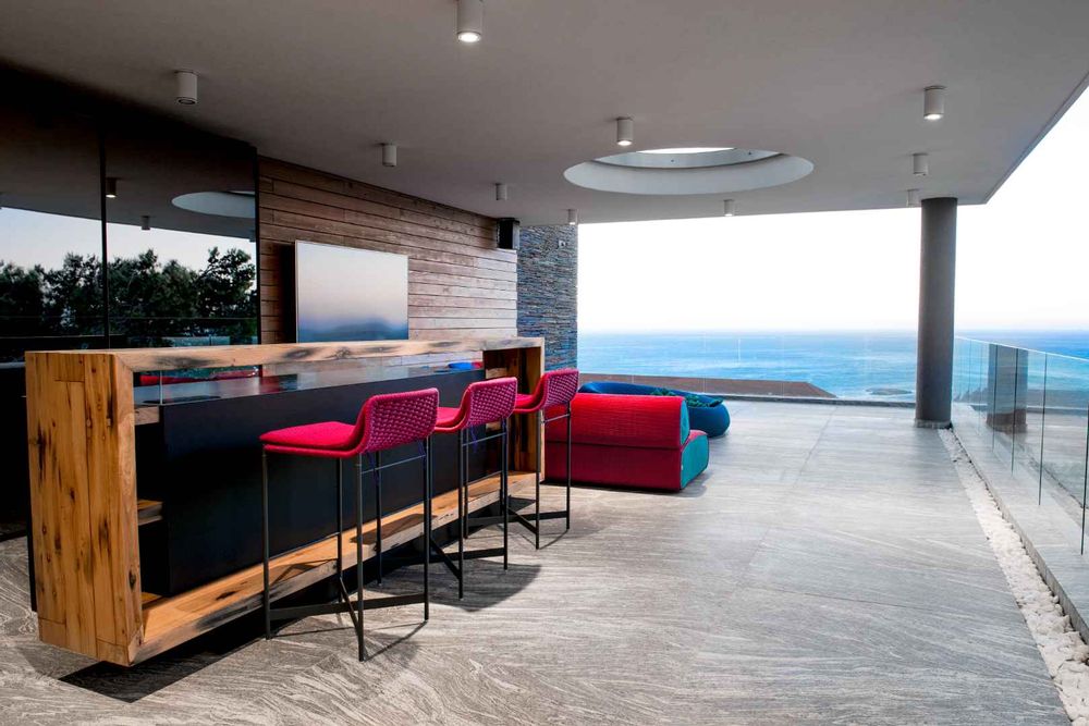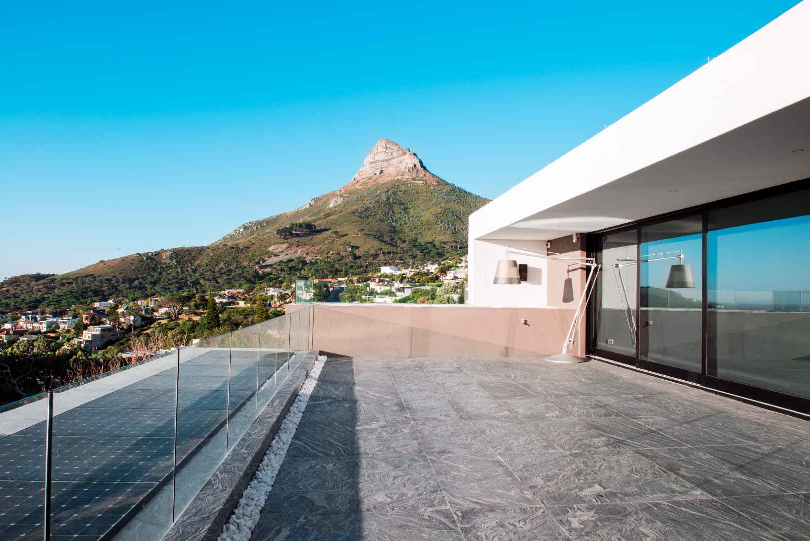This contemporary villa showcases wrap-around glass walls that maximise breathtaking sea and mountain views, offering a seamless flow of sophisticated open-plan living areas and a designer gourmet kitchen.