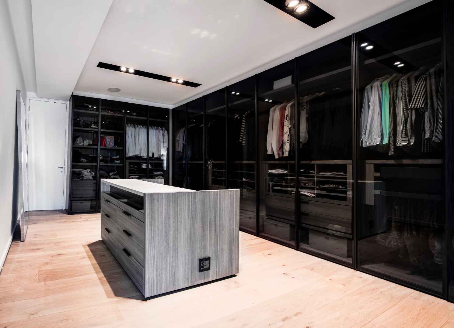 An ultra-luxurious master suite featuring a glamorous walk-in dressing room and a spa-like en-suite bathroom.