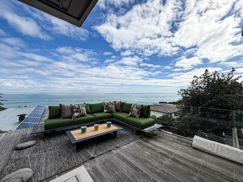 Expansive entertainment balcony perfect for hosting with panoramic mountain and sea vistas.
