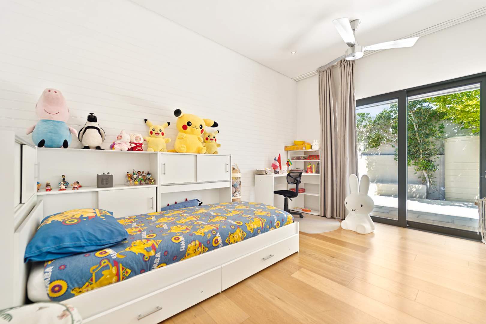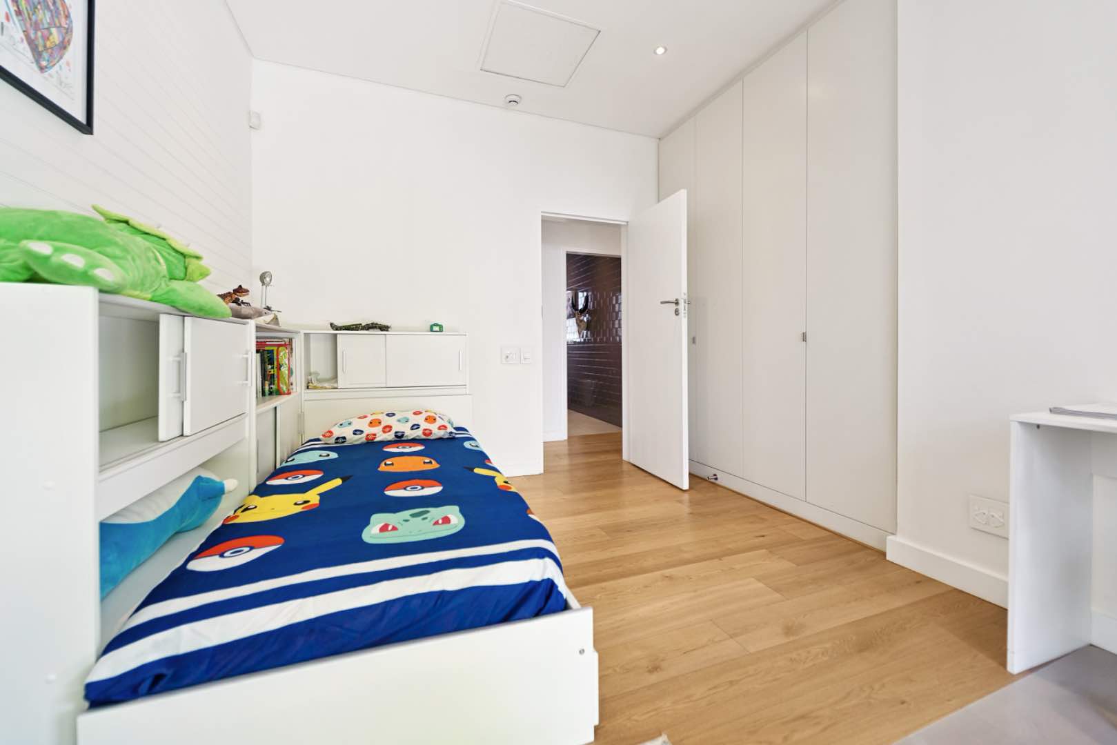 A fifth suite, currently used as a playroom, provides a separate entrance and overlooks the front yard with the pool, while an additional flat with a kitchenette and en-suite bathroom offers independent access, ideal as a domestic room or short term rental income.